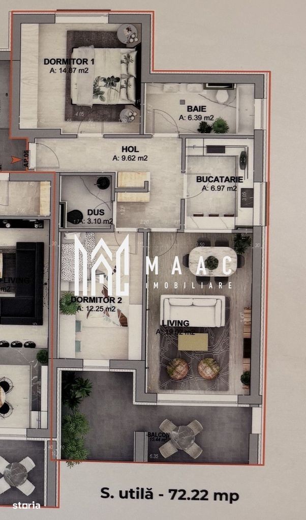 MAAC Imobiliare va propune spre vânzare un apartament la vilă cu 3 camere foarte aproape de zona industrială vest și aeroport Apartamentul este la cheie cu centrală proprie,încălzire în pardosea,parchet,băile cu geam, utilate complet și este compus din : Dormitor 1, 14.87 mp Dormitor 2, 12,25 mp Living, 19 mp Bucătărie, 6,97 mp Baie cu cadă și geam de aerisire, 6,39 mp Baie cu duș, 3,10 mp Hol, 9.62 mp Terasa, 15.44 mp Pentru mai multe detalii, precizați telefonic că ați văzut anunțul cu ID CP2852914