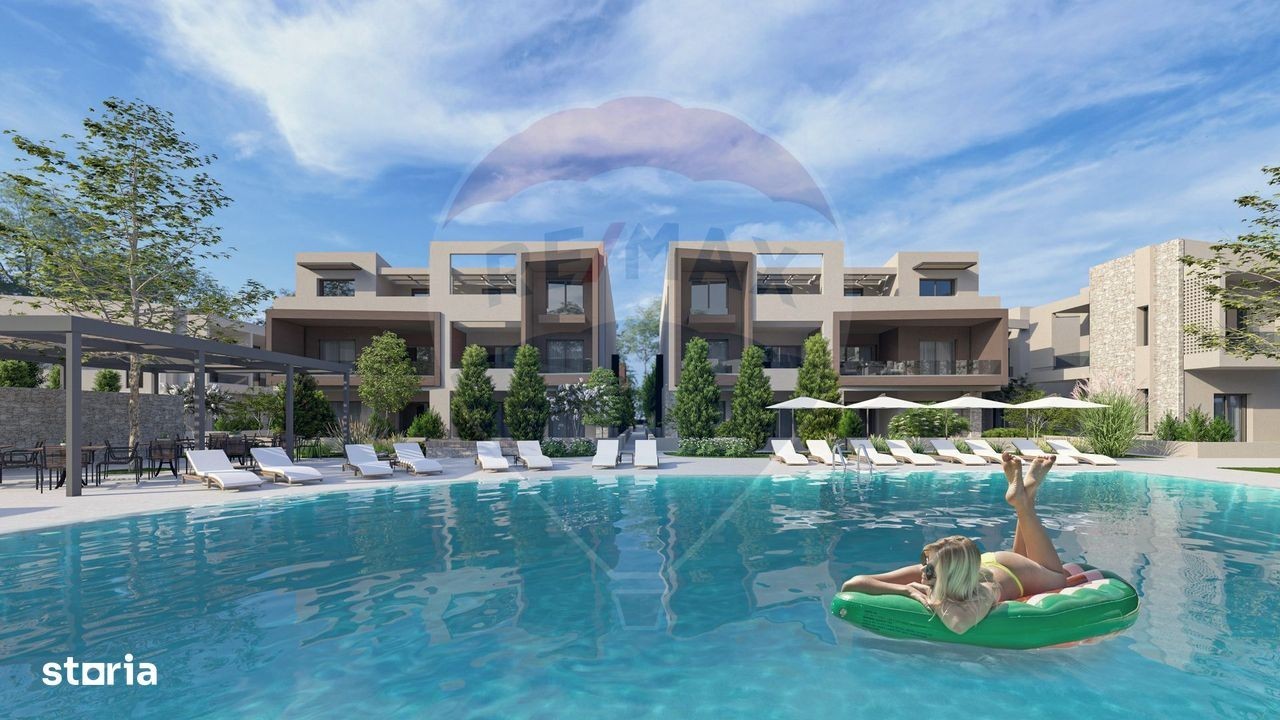 Un proiect nou în Asprovalta, Salonic, impresionează pe toată lumea prin dimensiunea și designul său. Este un complex de 100 de locuințe cu un magazin și o piscină centrală, în timp ce 14 locuințe au propria piscină privată. Designul său a fost realizat având ca principală preocupare integrarea completă în mediul natural, profitând în același timp de priveliștea asupra întregului front de coastă al acestei zone frumoase și de spațiul deschis din fiecare locuință sau apartament. Compoziția arhitecturală a fost creată astfel încât să transmită un sentiment de vecinătate combinat cu intimitate. Funcționalitatea, designul excelent și arhitectura modernă care coexistă armonios cu elementele arhitecturale tradiționale ale zonei sunt doar câteva dintre elementele care dau valoare acestui proiect. Materialele alese sunt piatra, tonurile pământii și texturile care sunt în deplină armonie cu mediul natural. În acest context, spațiul exterior a fost, de asemenea, studiat cu aceeași grijă, cu accesele și zonele de recreere, precum și piscina centrală, în jurul căreia se concentrează majoritatea funcțiilor complexului. În plus, complexul a fost creat având în vedere accesibilitatea pentru toți. O alegere excelentă pentru reședință permanentă sau de vacanță, în același timp putând fi o propunere de investiție inteligentă. PLATĂ PE MĂSURĂ CE CONSTRUIM - plan inteligent de rambursare Este un program inteligent de rambursare pentru clienți. Cumpărătorul-investitor cumpără cu rambursare graduală, fără intervenție bancară, în funcție de progresul lucrărilor de construcție. Obțineți cu ușurință propria casă nou construită, fără să o „observați”. VALOARE MAXIMĂ 5% RANDAMENT GARANTAT Este un program special conceput pentru clienții care cumpără case de vacanță. Ne ocupăm de întregul proces de închiriere a proprietății, precum și de curățenie și întreținere. Oferim o rentabilitate garantată de 5% din chirie în timpul sezonului turistic, în timp ce în restul de 6 luni casa este la dispoziția proprietarului pentru uz privat sau exploatare. Zona Asprovalta este un oraș de coastă din municipiul Volvi. Este situat pe țărmurile vestice ale golfului Strymonikos, la est de Salonic, al doilea oraș ca mărime din Grecia. Este una dintre cele mai dezvoltate stațiuni turistice din Macedonia, deoarece este „inundată” în special în lunile de vară de oameni din zonele înconjurătoare și din străinătate. Dezvoltarea continuă a Asprovaltei a dus la extinderea așezării, atât cu facilități hoteliere și cazări de toate tipurile, cât și cu numeroase case de vacanță. Frumusețea sa este unică. Verdeața muntelui și azurul mării compun un peisaj ideal pentru momente de relaxare.