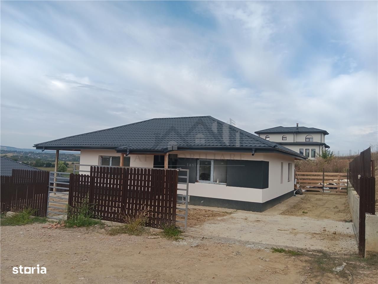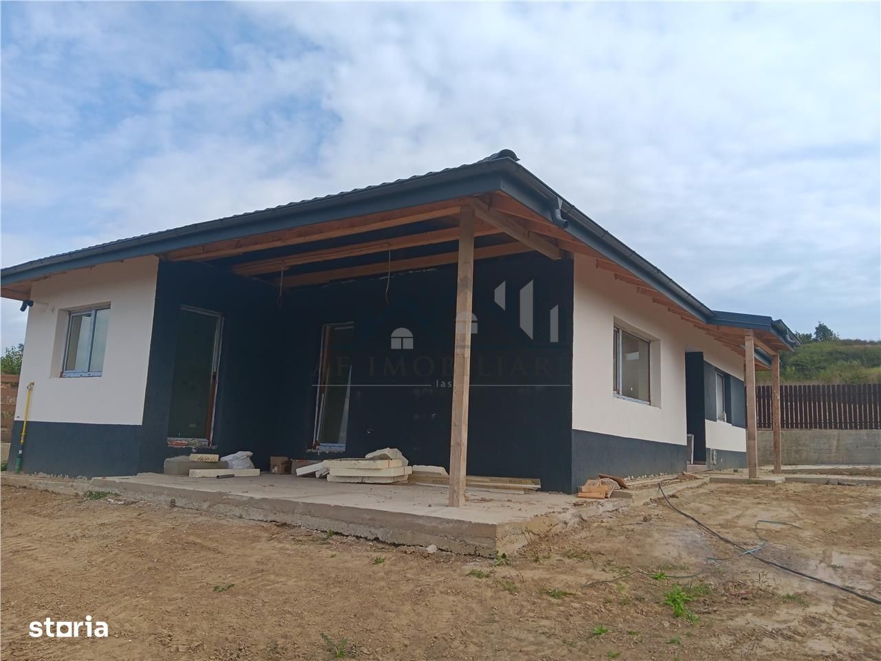 Ag. A.F.Imobiliare va propune spre vanzare CASA PARTER suprafata utila 101mp - living - 3 dormitoare - 2 bai una cu cada si una cu dus - bucatarie mare - holuri - - terasa cu acces din bucatarie si living Constructia casei: anul 2025, peretii exteriori si interiori din caramida, structura de rezistenta, fundatie inalta, stalpi, grinzi, centura din beton armat. Tamplaria exterioara PVC cu geam termopan, usi interioare MDF, pardoseli din parchet melaminat si gresie, faianta in bai si bucatarie, baile dotate complet. Terenul aferent construtiei: 450mp forma patrata suprafata plana, imprejmuit, cai de acces, trotuare, loc de parcare betonate. Curtea este generoasa, perfecta pentru gradina, foisor, loc de joaca pentru copii. Amplasamentul: Comuna Barnova, str Dafina Doamna, zona linistita, aer curat, trafic redus numai case noi, doar 6 km pana in sos. Bucium la intersectia cu Hanul Trei Sarmale. Pret = 120000euro (TVA inclus) La acest imobil mai trebuie facute cateva finisaje. Dupa incheierea unuei promisiuni de vanzare, aceste lucrari for fi facute in maxim doua saptamani. Comision Ag