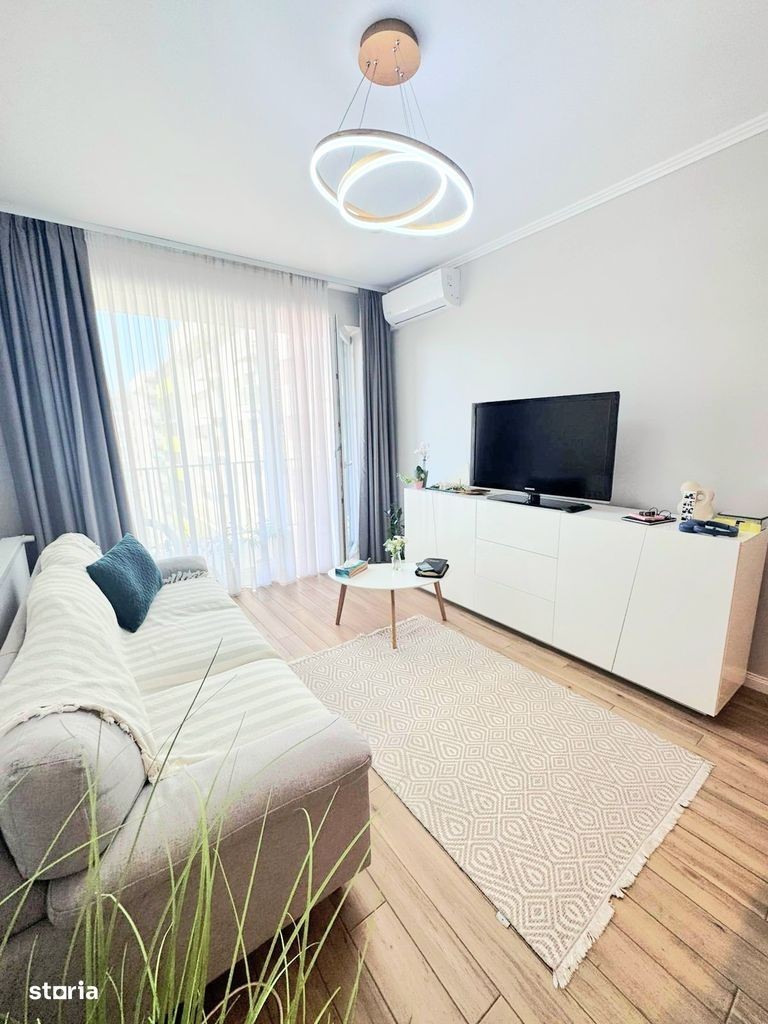 Vă propunem la închiriere un apartament modern compartimentat astfel:living open space cu bucătarie,2 dormitoare,1 baie,1 balcon,hol intrare.Apartamentul se închiriaza mobilat și utilat:Tv,plită,cuptor electric,hotă,frigider,mașină de spălat rufe,aer condiționat.Apartamentul este situat la etajul 9/10,bloc nou cu lift,din cartier Prima Oneștilor la 3 min de Kaufland"Prima Shop,Lotus Retail 2,mijloace de transport in comun,10 min distanta Piața Unirii.Apartamentul are și 1 loc de parcare privat la subteran.Pret 490 euro.
