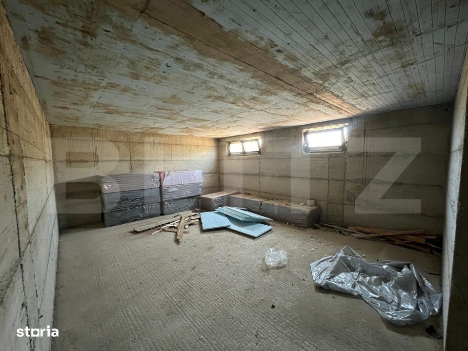 Blitz vă prezintă o casă nouă, modernă, ideală pentru cei care își doresc un cămin spațios, funcțional și personalizabil. Locuința este amplasată într-o zonă liniștită, cu vedere deschisă și acces facil, oferind un echilibru perfect între confort și intimitate. Construită pe un regim de înălțime P+E+subsol, casa dispune de un living generos la parter, cu bucătărie open space - spațiul perfect pentru momentele petrecute în familie sau alături de prieteni. Tot la parter se află un dormitor și o baie de serviciu, amplasată discret, dar extrem de utilă în viața de zi cu zi. Etajul aduce un plus de confort, fiind compartimentat în doua dormitoare, dintre care beneficiază de dressing propriu și baie individuală - un detaliu care face diferența în rutina oricărei familii. Fiecare cameră este luminoasă, cu ferestre mari și priveliște către împrejurimi. La subsol se află o încăpere spațioasă, care poate fi amenajată ca și cameră tehnică, spațiu de depozitare sau chiar bucătărie secundară, în funcție de nevoile viitorului proprietar. Imobilul la interior este în stadiul roșu, oferind libertatea de a fi finisat exact după gusturile și stilul de viață al noilor locatari. Structura solidă, compartimentarea eficientă și potențialul ridicat de personalizare transformă această casă într-o investiție sigură și un viitor acasă plin de posibilități. Un loc care așteaptă să fie transformat în povestea ta.