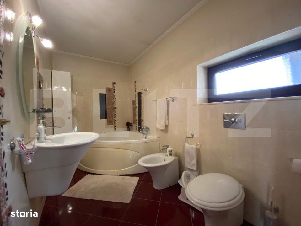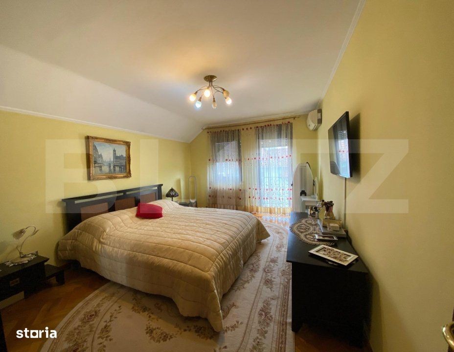 Blitz va propune spre vanzare o proprietate deosebită, situată într-o zonă centrală și liniștită, ideală pentru cei care își doresc confort, funcționalitate și un stil de viață modern. Casa, construită în anul 2005, dispune de o suprafață utilă de 150 mp și este amplasată pe un teren generos de 636 mp. Proprietatea impresionează prin designul atent realizat, finisajele de calitate și atenția la detalii. Este complet mobilată și utilată, pregătită pentru a deveni „acasă” fără investiții suplimentare. Compartimentare: -3 dormitoare luminoase, bine proporționate, cu balcon -dressing -2 băi -living spațios cu șemineu - locul perfect pentru serile relaxante -bucătărie complet echipată + spatiu depozitare -terasa amenajata frumos - camera tehnica + spatiu depozitare Curtea oferă un spațiu verde frumos întreținut, perfect pentru activități în familie sau grădinărit, și un garaj cu acces facil. Un plus important îl reprezintă panourile fotovoltaice de 8kw, care asigură eficiență energetică și costuri reduse de întreținere. Această casă este alegerea ideală pentru cei care caută o locuință confortabilă, într-o zonă accesibilă, aproape de toate facilitățile urbane. Te asteptam cu drag la vizionare!