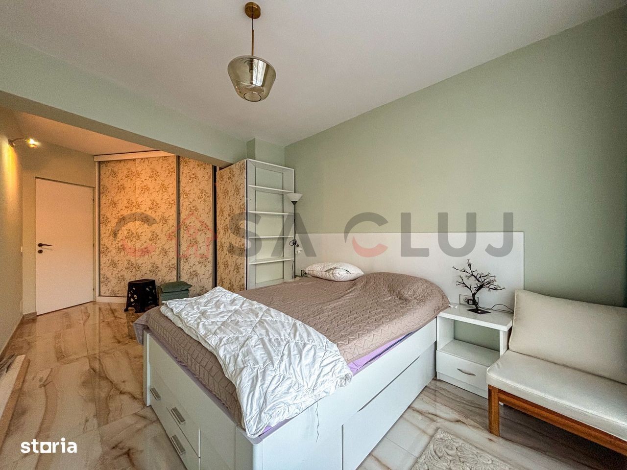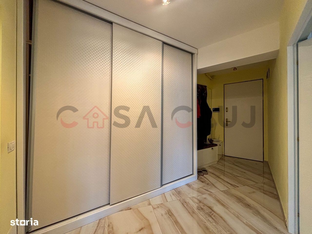 Un apartament modern și luminos, disponibil spre închiriere, situat în complexul WINGS, unul dintre cele mai apreciate ansambluri rezidențiale din Cluj-Napoca. Orientat spre curtea interioară și deal, retras de la strada principală, apartamentul oferă liniște, confort și un standard ridicat de locuire, ideal pentru un stil de viață urban echilibrat. Localizare - Complex WINGS, strada Frunzișului: Complex finalizat în 2022, recunoscut pentru arhitectura sa, calitatea construcției și facilitățile oferite. La 3 minute de mers pe jos de stația de autobuz La 3 minute de Lidl Curte interioară amenajată și zonă specială pentru plimbarea animalelor de companie Complex securizat, bine întreținut Compartimentare: Living cu bucătărie open space Dormitor cu șifonier spațios Antreu cu șifonier generos Baie dotată cu cabină de duș și sistem de ventilație Balcon de 9mp, cu acces atât din living, cât și din dormitor Caracteristici: 52mp utili plus balcon de 9mp Etaj 1 din 14 Orientare estică Încălzire în pardoseală Apartament orientat spre curtea interioară și deal, foarte liniștit Parcare subterană inclusă în preț Pet friendly Condiții de închiriere: Chirie: 550 euro ( nu include cheltuielile ) Prețul include loc de parcare subteran Preț fix, nu este negociabil Un apartament echilibrat, modern și liniștit, într-un complex de referință al orașului. Disponibil imediat. Sună pentru detalii sau pentru a programa o vizionare.