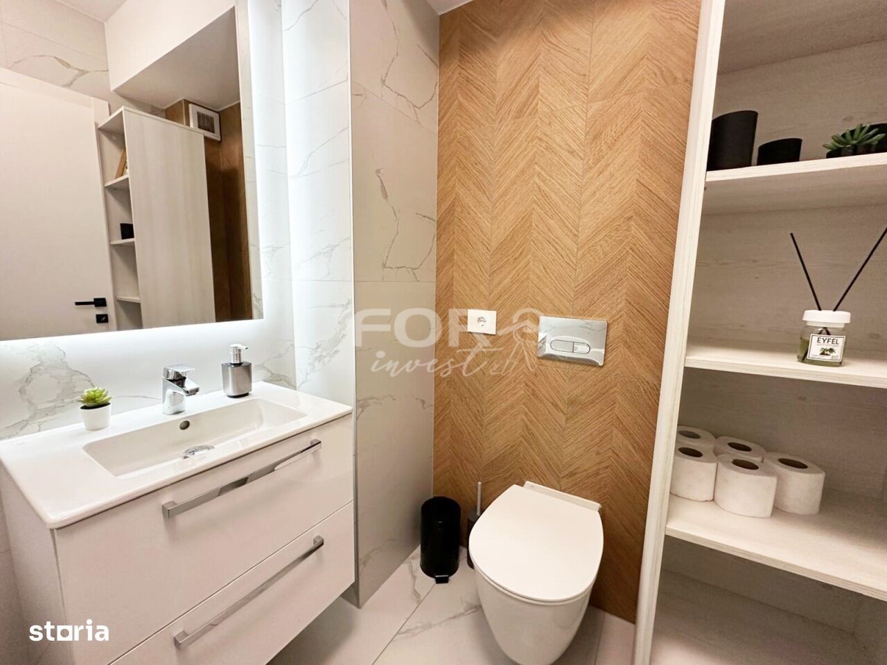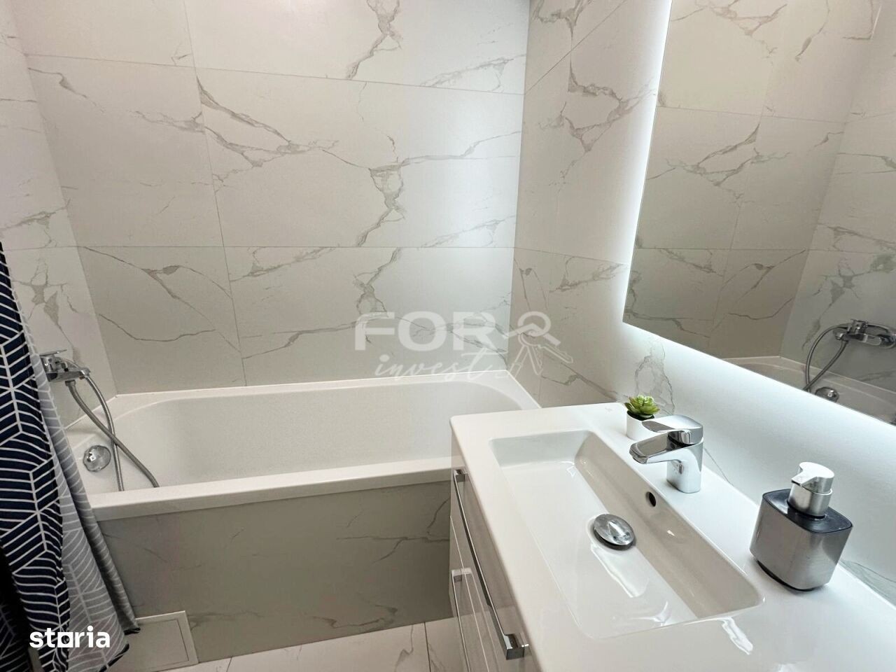 Agenția For-Invest vă propune spre vanzare un apartament modern cu 3 camere, situat în complexul Prima Green, cartierul Nufarul din Oradea. Locuința are o suprafață utilă de 55 mp și se află la etajul 9 al unui imobil nou cu 10 niveluri, dotat cu două lifturi moderne și sistem de supraveghere video. Apartamentul este decomandat și dispune de o compartimentare practică: un living spațios cu ieșire pe balconul deschis si bucătărie open-space cu zonă de luat masa, 2 dormitoare și baie cu vana. Spațiul este luminos pe tot parcursul zilei, amenajat modern, cu mobilier și electrocasnice de calitate. Apartamentul se vinde mobilat si utilat cu electrocasnice: frigider, plită și cuptor electric, hotă, cuptor cu microunde, mașină de spălat vase, mașină de spălat rufe, televizor și aer condiționat Finisajele sunt atent alese, folosindu-se materiale de înaltă calitate care contribuie la un ambient plăcut și elegant. Apartamentul dispune de ferestre mari cu geam termopan și tâmplărie PVC, uși interioare din MDF, ușă metalică de siguranță la intrare, gresie și faianță moderne. Încălzirea se realizează în pardoseală, prin rețeaua de termoficare a orașului, blocul având punct termic propriu. Amplasarea apartamentului se află într-o zonă de interes a municipiului Oradea, aproape de școli, grădinițe, stații de transport în comun și complexul comercial Lotus, oferind acces rapid către principalele puncte ale orasului. Prețul de vanzare al acestui apartament modern este de 135.000 euro. = The For-Invest Agency offers for rent a modern 3-room apartment located in the Prima Green residential complex, in the Nufărul district of Oradea. The apartment has a usable area of 55 sqm and is situated on the 9th floor of a new 10-story building equipped with two modern elevators and a video surveillance system. The apartment is detached and features a practical layout: a spacious living room with access to the open balcony, an open-space kitchen with dining area, 2 bedrooms, and a bathroom with a bathtub. The space is bright throughout the day, furnished in a modern style with high-quality furniture and appliances. Among its amenities are: refrigerator, electric stove and oven, extractor hood, microwave, dishwasher, washing machine, TV, and air conditioning. The finishes are carefully chosen, using high-quality materials that contribute to a pleasant and elegant atmosphere. The apartment has large double-glazed PVC windows, MDF interior doors, a secure metal entrance door, and modern tiles and ceramics. Heating is provided through underfloor heating, connected to the city's district heating system, with the building having its own thermal point. The apartment is located in a highly desirable area of Oradea, close to schools, kindergartens, public transport stops, and the Lotus shopping complex, offering quick access to the city's main points. The selling price of this modern apartament is 135.000 euros