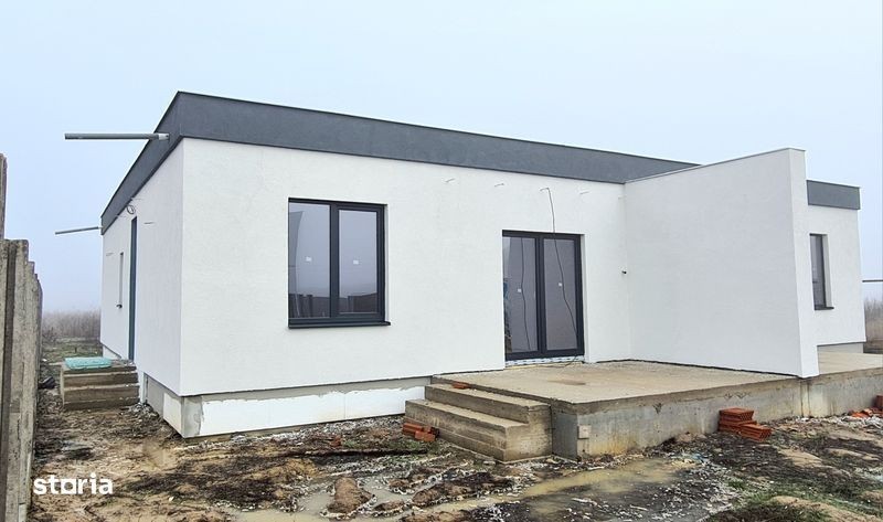 Duplex 78 mp utili si 12 mp terasa, compus din 2 dormitoare, 1 living, bucatarie inchisa si 2 bai, acoperis tip terasa. Sunt montate 2 trasee pentru clime, in hol si in dormitorul principal. Incalzirea se face prin pardoseala, cu termostat ambiental si centrala Baxi sau De Dietrich. Tamplarie rehau geamuri tripan 4 anotipuri cu banda etansare ferestre si usi. Fatada are termosistem 10 cm eps 100, iar acoperisul termosistem de 20 cm eps 120. Hidroizolatia acoperisului este realizata cu membrana pvc de catre o echipa specializata, cu certificat de garantie. Are panou solar -pentru apa calda menajera, fiind imobil clasa energetica A. Utilitati: curent, apa, gaz, fosa septica. Amenajare exterior alee intrare pana la terasa si loc parcare masina pavaj. Este imprejmuit cu gard de beton. Daca prezinta interes pentru dvs va asteptam cu drag la vizionare!