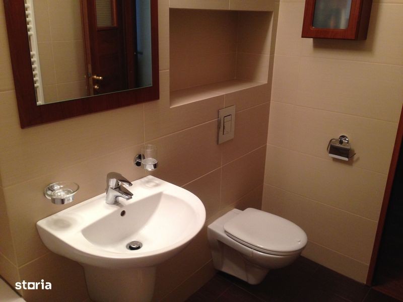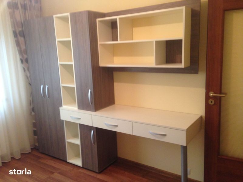 Apartament complet renovat si mobilat. Etaj 3/4, trei camere, doua bai. * Mobilier Mobexpert, bucatarie Keros Design. * Termopane Salamander, usi interior Porta Doors. * Centrala termica Buderus, sistem termoficare ingropat, fara tevi la vedere. * Electrocasnice bucatarie Hotpoint, accesorii de baie Grohe, etc.