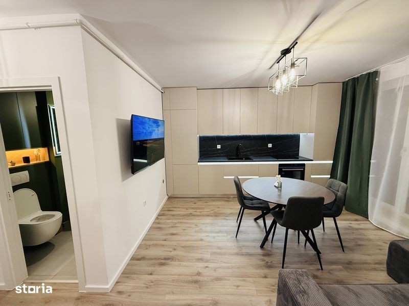 Inchiriere apartament 2 camere, in bloc nou, mobilat modern, cu parcare subterana, situat in zona Valea Chintaului, in complexul Beta Residence, pe strada Siretului nr 16, la o distanta de 6 Km de magazinul AUCHAN, in cartier este si statia de autobuz linia M39. Apartamentul este situat la etajul 1 din 5 in bloc nou cu lift, are centrala termica proprie, incalzire in pardoseala, este semidecomandat si este compartimentat astfel: dormitor separat, dresing, living open-space cu bucataria care este dotata complet (plina pe indictie, cuptor electric, hota, masina de spalat vase, masina de spalat haine, uscator, combina încorporată, hol, baie cu cabina de dus walk-in, balcon. In pretul chiriei este inclus un loc de parcare subteran.Pentru mai multe informatii, nu ezitati sa ne contactati la numarul de telefon. Totul este nou achizitionat, apartamentul este facut de la stadiul de semifinisat. Apartamentul este disponibil din 10.09.2025.