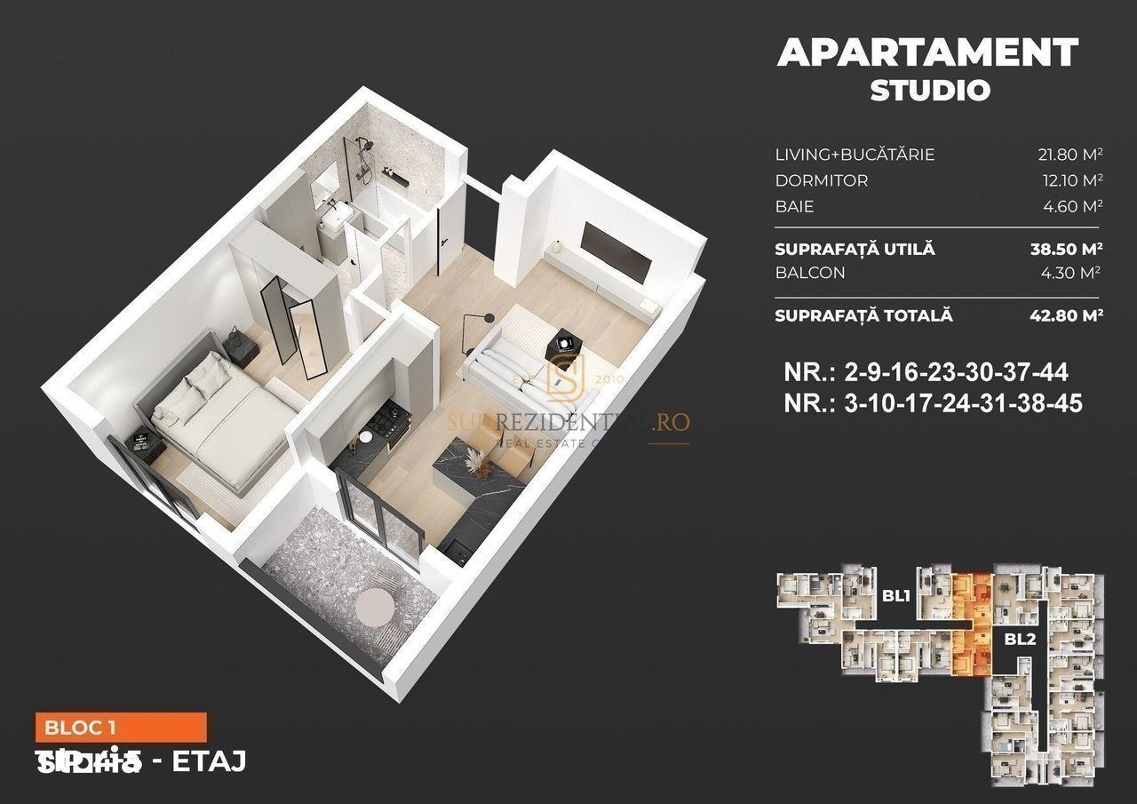 Descopera o locuinta noua si inteligent compartimentata, situata intr-un ansamblu rezidential de top, care imbina perfect confortul urban cu accesibilitatea. Fie ca iti doresti o locuinta functionala sau o investitie rentabila, acest apartament este alegerea potrivita. Suprafata utila a apartamentului este de 42.80 mp, completata de un balcon generos de 8.30 mp, perfect pentru momentele de relaxare in aer liber. Configuratia interioara: - Zona de zi spatioasa de 22.75 mp, cu bucatarie deschisa, ideala pentru un stil de viata modern - Dormitor de 13.0 mp, bine iluminat si confortabil - Baie de 4.85 mp, cu finisaje de calitate superioara - Hol de 2.20 mp, optimizat pentru spatii de depozitare Avantaje: - Ansamblu rezidential modern, cu facilitati integrate - Acces rapid la metrou si mijloace de transport - Complex sigur, cu monitorizare video si acces controlat - Potrivit atat pentru locuire, cat si pentru investitie Acest apartament beneficiaza de o pozitionare excelenta, oferind acces facil la metroul Berceni, care se afla la cateva minute de mers pe jos. Transportul public STB este bine reprezentat in zona si asigura conexiuni rapide catre punctele cheie ale orasului. Zona este una dinamica si moderna, avand in apropiere centre comerciale importante, precum Auchan, Lidl, Kaufland, Carrefour si Metro, dar si Mall La Strada, cu restaurante si magazine variate. De asemenea, locatarii au acces la spatii verzi si parcuri, inclusiv Parcul Tudor Arghezi, Parcul Copiilor si Parcul Laurentiu Raiciu, ideale pentru relaxare si activitati in aer liber. Pret de lista: 86.000 Euro + TVA
