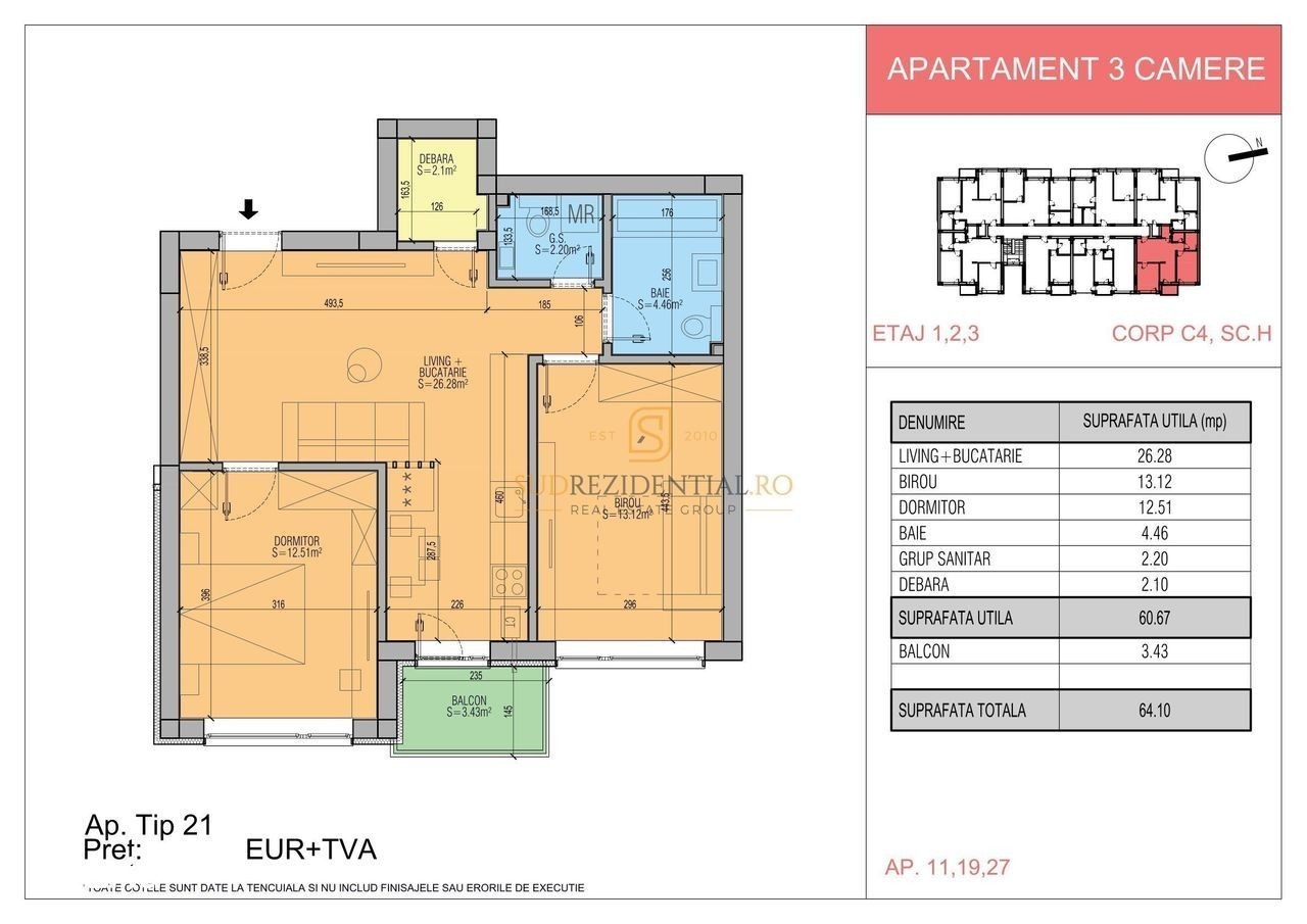 Apartament cu 3 camere de vanzare, situat in ansamblul rezidential "Sky Garden Residence" - Boutique 90 Residence, la etajul 1/3 al unui imobil modern. Proiectul urmeaza sa fie livrat in 2025 si ofera spatii bine compartimentate si finisaje de calitate superioara, perfect pentru un stil de viata confortabil si modern. Apartamentul are o suprafata utila de 59.25 mp si include urmatoarele spatii: - Living + bucatarie open-space: 28.55 mp - Birou: 12.01 mp - Dormitor: 12.02 mp - Baie principala: 3.60 mp - A doua baie: 3.07 mp - Balcon: 4.06 mp Suprafata totala ajunge la 63.31 mp, iar compartimentarea eficienta asigura un flux armonios intre spatii. Acest apartament este ideal pentru o familie care doreste un echilibru intre spatiul de locuit si proximitatea fata de facilitati importante. Ansamblul Rezidential Boutique 90 este amplasat stradal pe Soseaua Leordeni, in Popesti-Leordeni, aproape de Soseaua Oltenitei - principala artera a orasului. Locatia se afla la ~9 km de centrul Bucurestiului, cu acces rapid prin strazi asfaltate, iluminate si prevazute cu trotuare. De asemenea, ofera conectivitate excelenta la Soseaua de Centura si Autostrada A0, cu legaturi catre A1, A2 si A3. Proiectul are acces facil la scoli, gradinite, unitati medicale, banci, centre comerciale si restaurante. In apropiere se afla Lidl, Mega Image, Kaufland, piata agroalimentara, iar Sun Plaza Mall este la doar 15 minute cu masina. Transport public: STB (liniile 439, 440), maxi-taxi si metrou (statiile Berceni, Dimitrie Leonida, Aparatorii Patriei). In pretul afisat nu este inclusa cota de TVA.