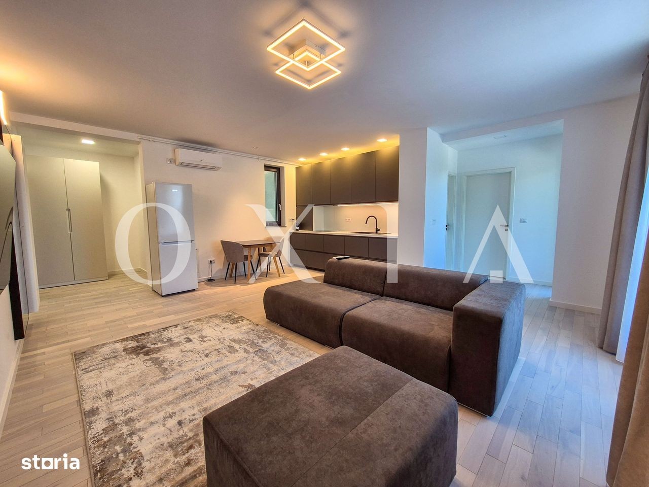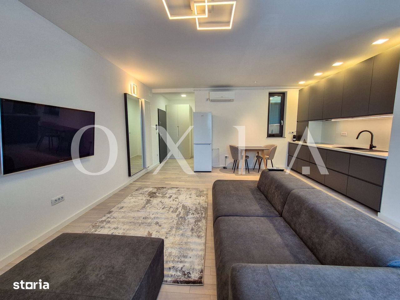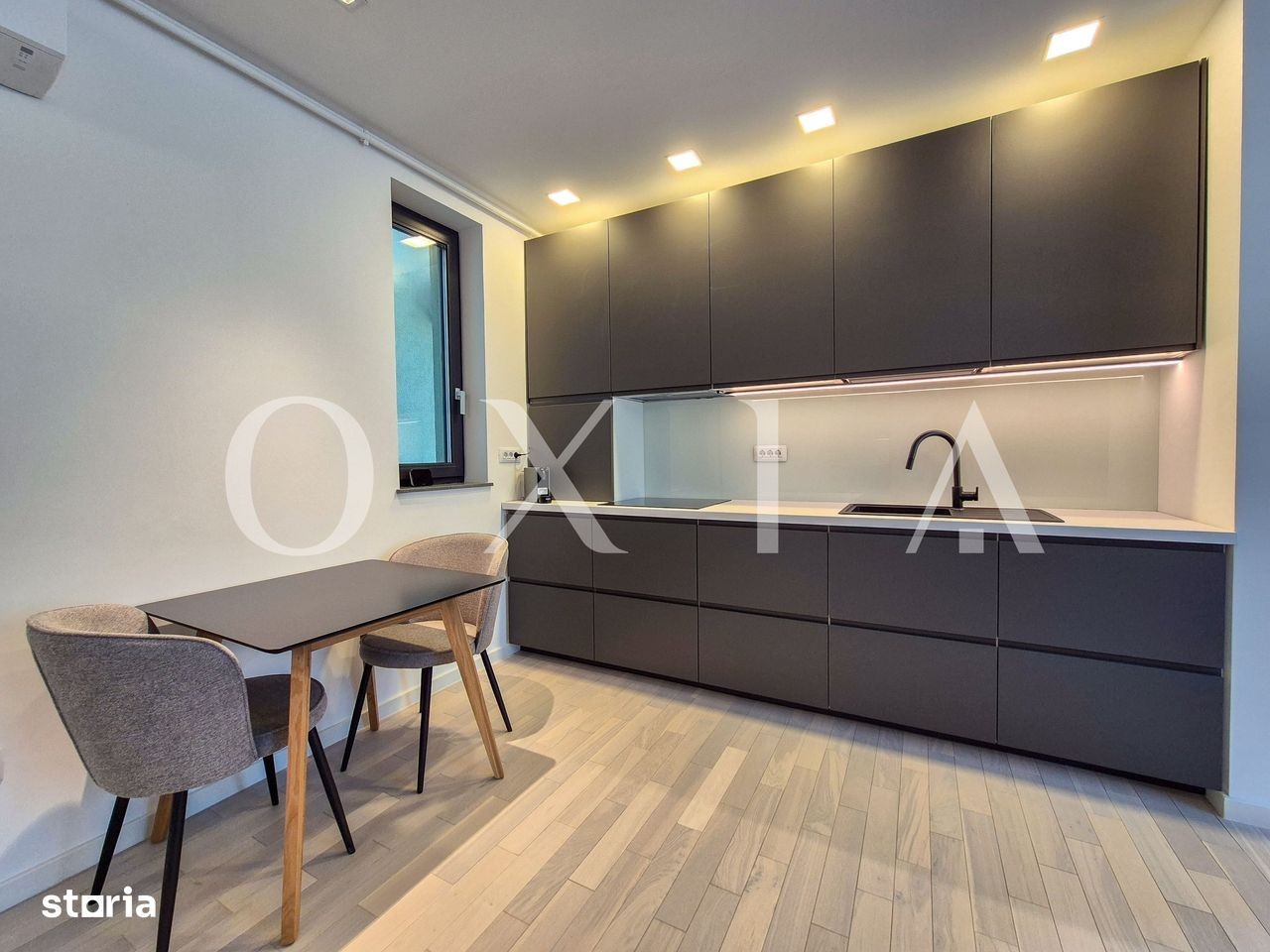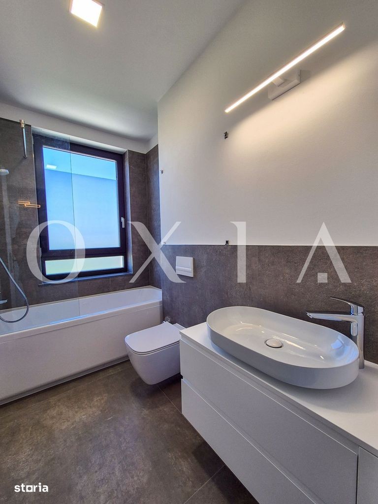 OXIA va prezinta spre inchiriere apartament nou cu 2 camere situat in Dumbravita, acces de pe strada Ferventia. Imobilul este construit in 2025, proprietatea se afla la etajul 1/3, avand o suprafata utila de 54 mp si o terasa de 6 mp. Compartimentare: * Hol acces * Spatiu depozitare * Bucatarie deschisa spre un living generos * Dormitor * Baie dotata cu cabina de dus si geam * Terasa cu iesire din living Detalii si finisaje: Apartamentul pune accent pe calitate, avand amenajari premium: gresie/faianta de top, ferestre PVC cu geam termopan, usi interioare din MDF, usa de intrare metalica, vopsea lavabila, etc. Confortul termic este garantat de centrala proprie pe gaz incalzire prin calorifere si de sistemul performant de climatizare. Beneficiati de un loc propriu de parcare suprateran. Proprietatea se inchiriaza complet mobilata si utilata. Pret: 550 EURO + TVA + garantie + comision agentie Pentru a programa o vizionare sau pentru informatii suplimentare, sunati la: