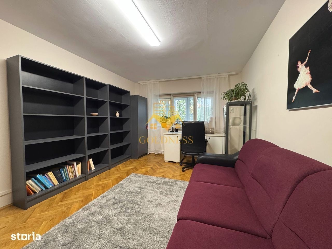 GOLDNESS Imobiliare vă propune spre închiriere un apartament cu 3 camere complet mobilat și utilat, la etajul 2 într-un imobil de 4 etaje, în Cartierul Manastur. Se află în apropierea stațiilor de transport în comun, magazine, restaurante, spații verzi, farmacii, etc. Apartamentul este compartimentat astfel: - dormitor cu pat matrimonial, dressing, noptiere - dormitor cu pat matrionial, comoda, dulap - living cu canapea extensibila, comoda, TV - bucatarie complet utilată și mobilată, loc de servit masa - baie cu cada, calorifer port prosop și dulap pentru depozitare. - balcon de 5 mp. Imobilul este dotat cu toate cele necesare- centrală proprie, frigider, aragaz, hotă, mașină de spălat haine, etc. Dacă sunteți interesați de acest apartament și doriți să îl vizionați, dar și pentru alte oferte nu ezitați să ne contactați telefonic sau prin e-mail. Vă stăm la dispoziție! Pentru intermediere se percepe un comision de 50% din prețul chiriei!
