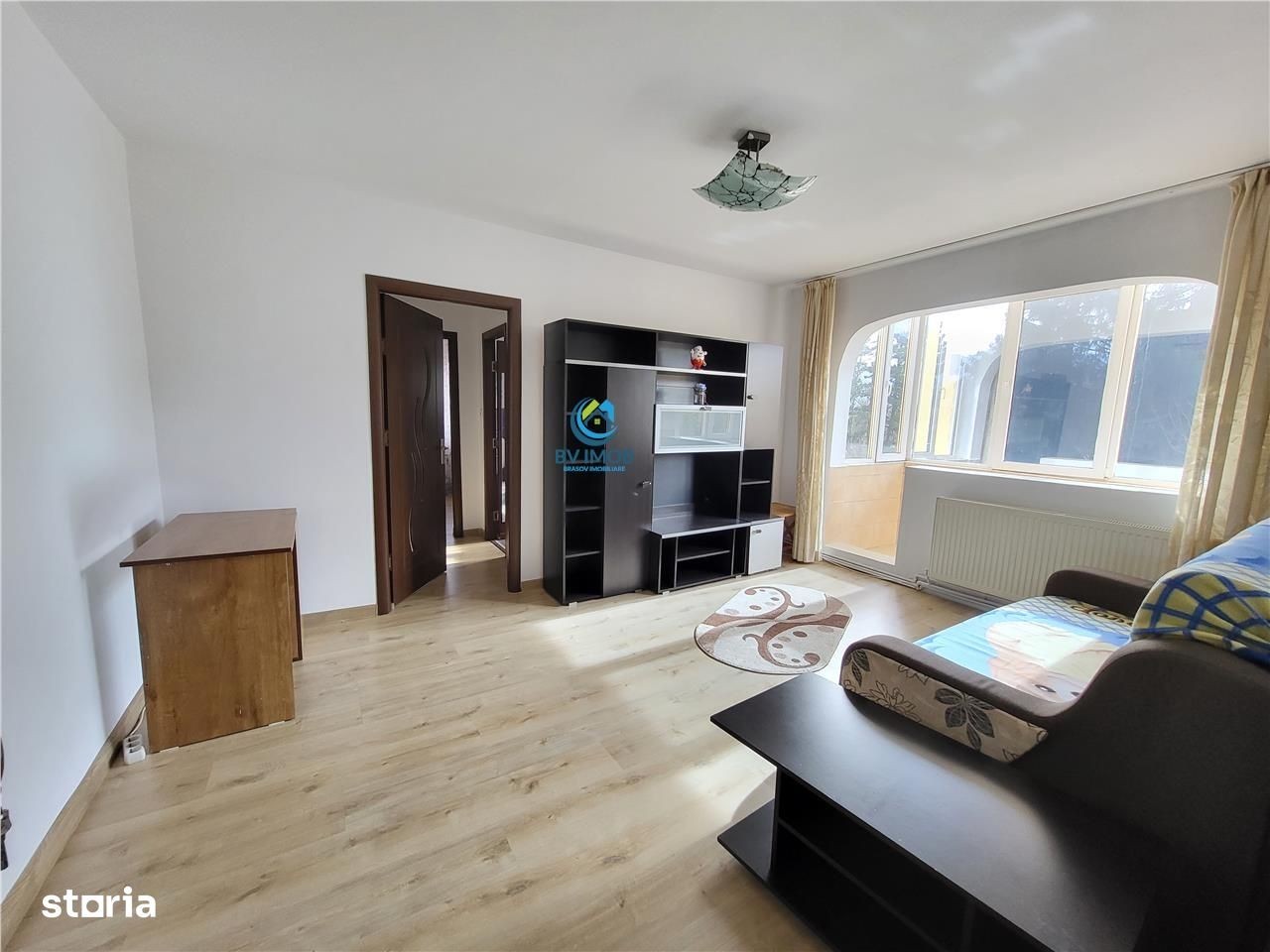 Agentia Imobiliara BV Imob va propune in Exclusivitate spre inchiriere un apartament de 2 camere situat in zona Astra reper Bulevardul Saturn la etajul 3 al unui bloc izolat termic de 4 niveluri. Imobilul se inchiriaza complet mobilat si utilat asa cum se vede in poze. Dispune de incalzire prin centrala termica proprie, ferestre cu geam termopan integral, finisaje moderne. Apartamentul este de tip semidecomandat, se intinde pe o suprafata de 55 mp dispensati astfel: 2 holuri, 1 bucatarie, 1 living, 1 balcon, 1 camara,1 dressing, 1 dormitor. Zona este una cu multa verdeata. Amplasarea este de exceptie: in fata blocului avem statie Ratbv, in apropiere avem: piata Astra, scoala, gradinita, magazin Lidl, Profi, parc. Apartamentul este liber la inchiriere. Pentru mai multe detalii ma puteti contacta oricand. Se face contract de inchiriere inregistrat. Vizionari se pot face oricand ( avem cheile de la locatie).