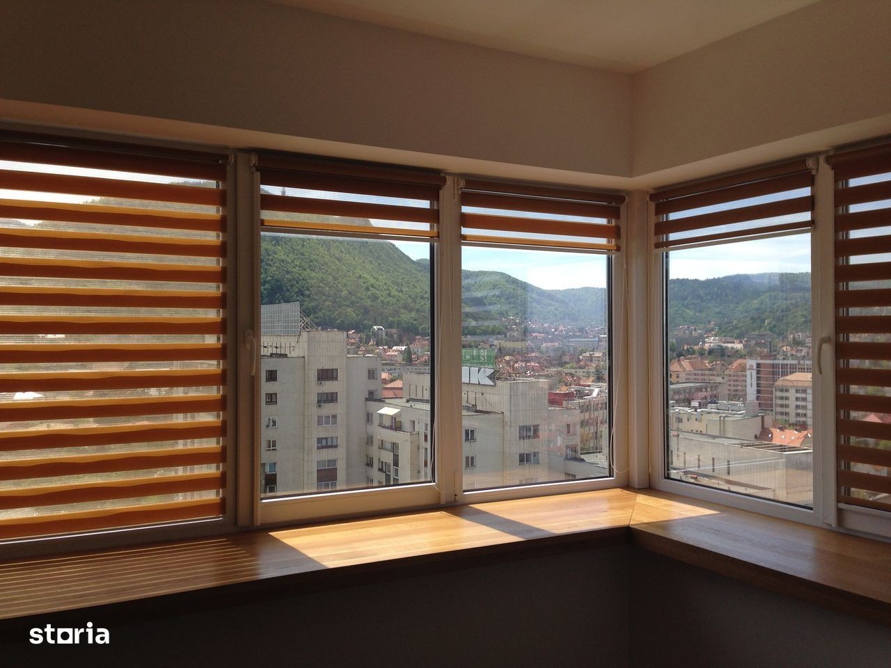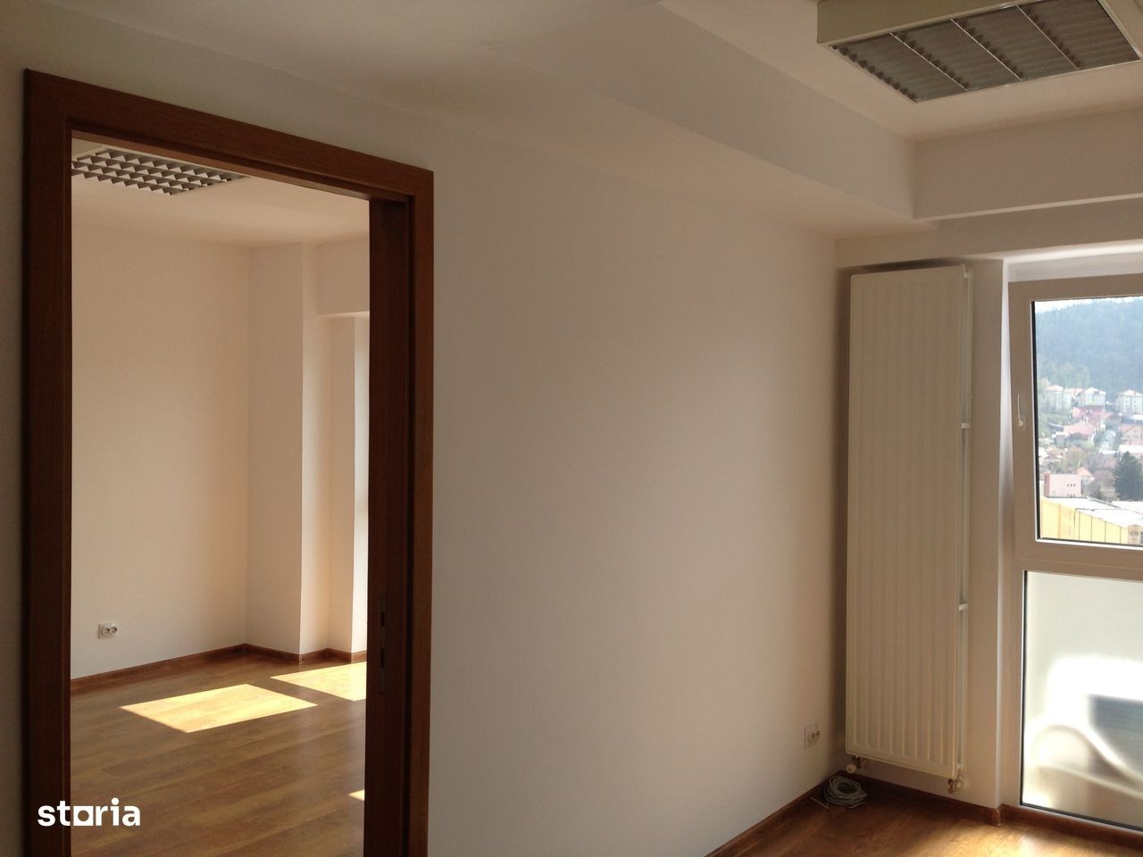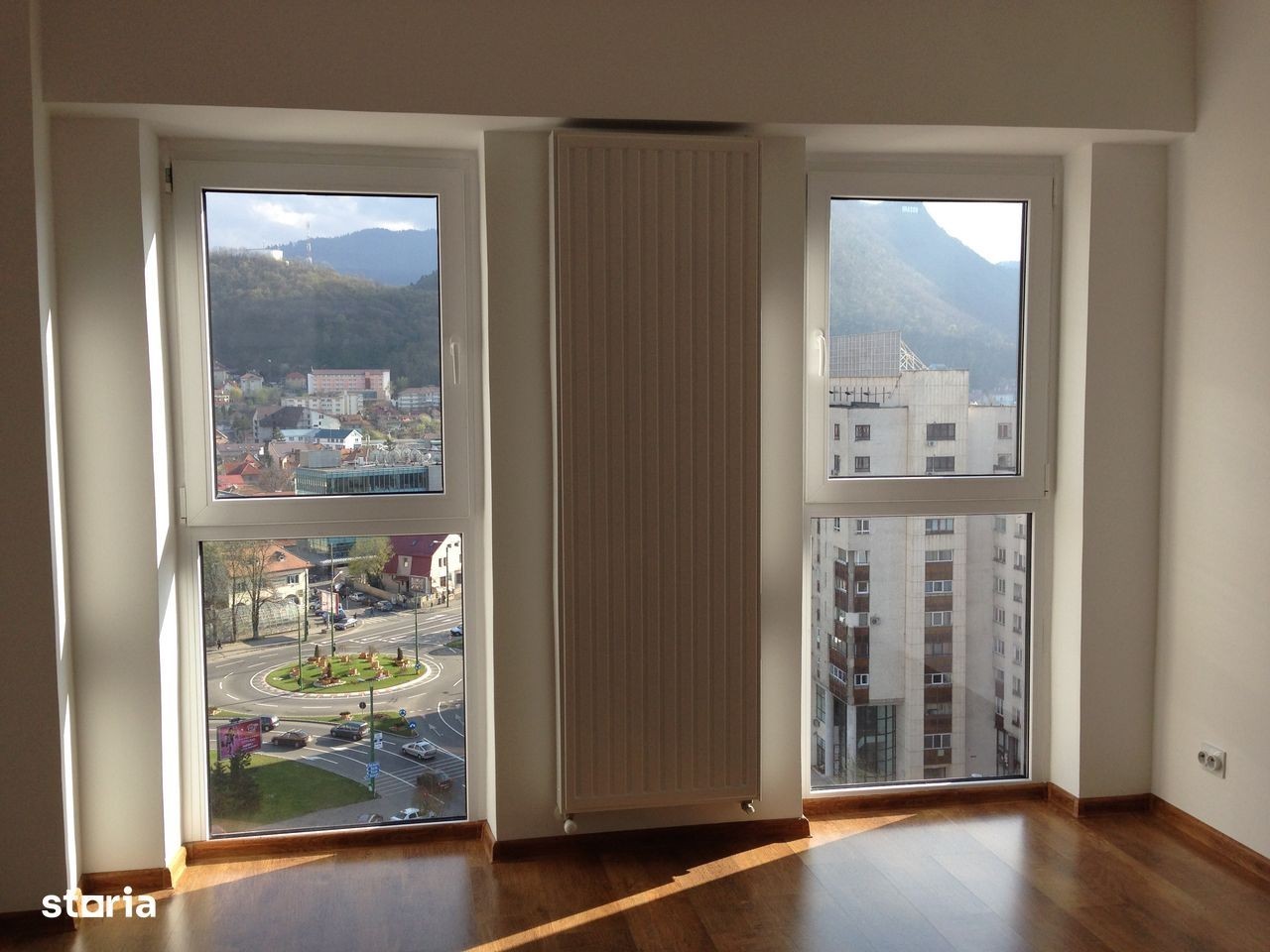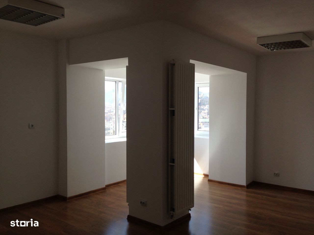 De vanzare, direct de la proprietar persoana fizica, spatiu de birou situat pe bd. Mihail Kogalniceanu in centrul administrativ si de afaceri al Brasovului. Aflat la etajul 9 din 10, cu orientare S-V, in primul bloc turn vis-a-vis de AFI mall, spatiul beneficiaza de o pozitie privilegiata, avand o vedere panoramica asupra centrului Brasovului. Imobilul are destinatie exclusiv nerezidentiala, locatia prezentand interes datorita proximitatii fata de Tribunalul Brasov, ANAF, Camera de Comert si Industrie, sucursale bancare si asigurari, clinici etc.