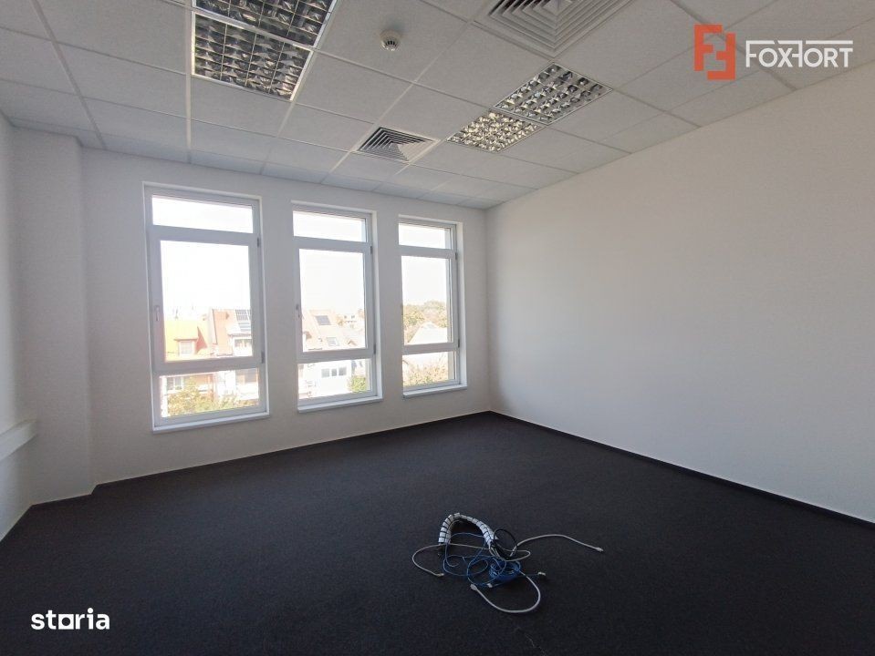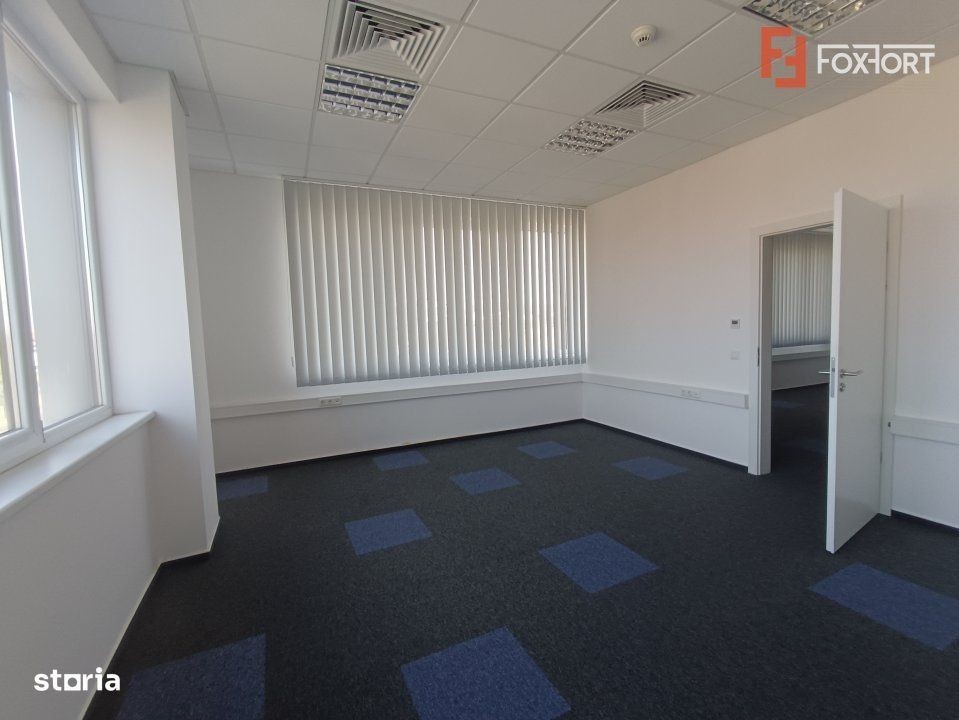 Spatiu birouri cu 5 camere de inchiriat in Timisoara. FOXFORT propune de inchiriat spatiu de birouri cu 5 camere in bloc situat in Timisoara, aflat la Etajul 2 intr-un bloc cu regim de inaltime Parter + 2 Etaje, avand 5 camere, 2 bai. Suprafata utila este de 760 mp Anul constructiei 2010, structura beton. Spatiul dispune si de 7 locuri de parcare + parcare subterana. Parter: - Izolatie fonica superioara; - Tamplarie exterioara cu sticla dubla de 8mm (4mm e cea uzuala); - Izolatie fonica tavane suspendate casetate OWA Acoustissmart; - Sandila70/0 (Sound reduction 30dB); - Izolatie fonica suplimentara; - Usi PortaDOORS (Door brush noise reduction); - Izolatie termica + fonica pe fatada cu vatabazaltica (fatada NORD-la artera principala si fatada EST); - Izolatie + fonica pe fatada cu vatabazaltica (fatada NORD-la artera principala si fatada EST); - Izolatie termica cu polistiren 20cm (fatada SUD si fatada VEST); - Fatada ventilata cu finisaj tip ALU-BOND-clasa Energetica B+; - Consumuri reduse de energie termica si electrica; Spatiile de birouri sunt cablate pentru transfer de date cu certificat pentru fiecare priza. - Spatiul SERVER dedicat cu podea suspendata UNIFLAIR si climatizare separata profesionala DAIKIN; - Spatiu LOUNGE Parter; - Bucatarie cu balcon; - Curte interioara; - Sistem de climatizare/caldura cu reglaj separat pentru fiecare birou in parte; - Acces in curte interioara cu bariera; - Control acces la toate nivelele programabil; - Posibilitate montare panouri solare pe acoperis S=700mp; Finisaje interioare: - Usa intrare: Metal; - Usi interioare: Celulare; - Tamplarie ferestre: Pvc; - Podele: Parchet, gresie. Pretul este de 8360€ - COMISION 0% Se accepta ca si modalitate de plata surse proprii. ID intern: C8814