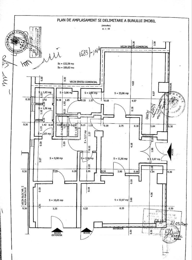 Agentia Contur Imobiliare Bacau ofera spre vanzare un spatiu comercial situat in centrul orasului pe strada Razboieni avand deschiderea la 2 strazi - Aleea Parcului si Razboieni. Caracteristici :