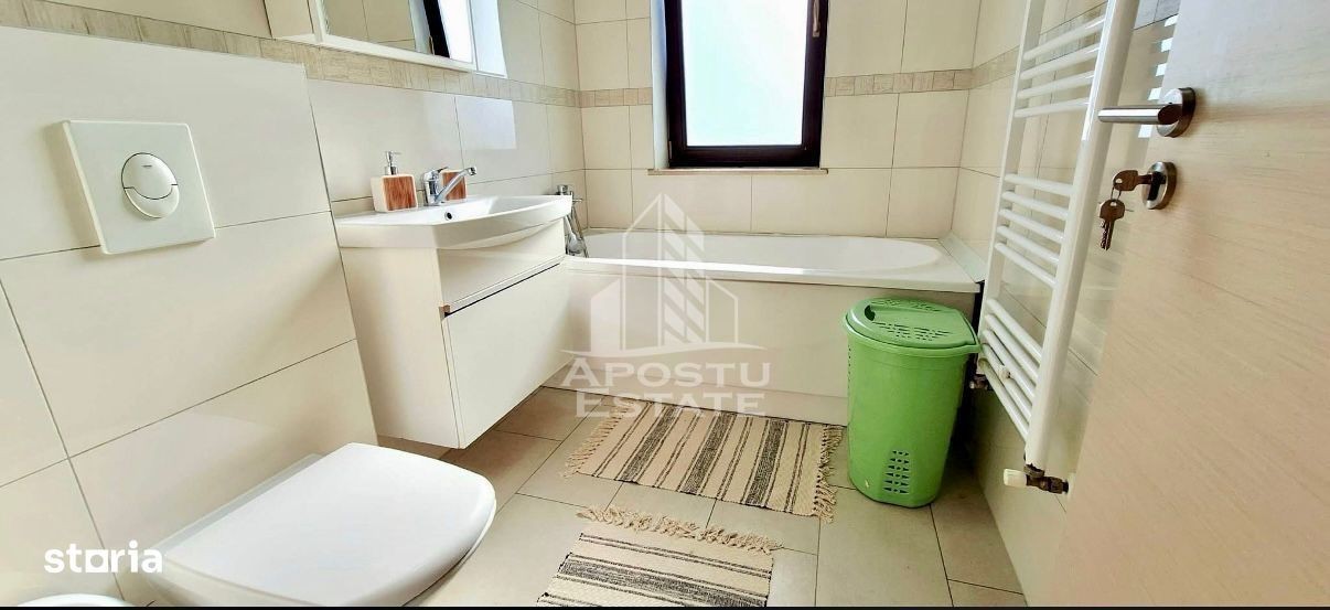 APOSTU ESTATE vă propune spre închiriere un apartament cu 2 camere, decomandat ideal pentru cupluri, o familie la început de drum sau persoane care doresc un spațiu confortabil. Suprafață utilă: 52mp Compartimentare eficientă: Hol de acces Bucătărie inchisa, complet mobilată și utilată, cu loc de luat masa Baie cu cada și geam pentru ventilație naturală Confort și facilități: Centrala proprie Loc de parcare inclus in pret Apartamentul este complet mobilat si utilat. Localizare: Giroc, locatie bine conectata la oraș Ideal pentru: Cupluri Familie Preț chirie: 380€ Programează o vizionare! ID intern: CP2699987