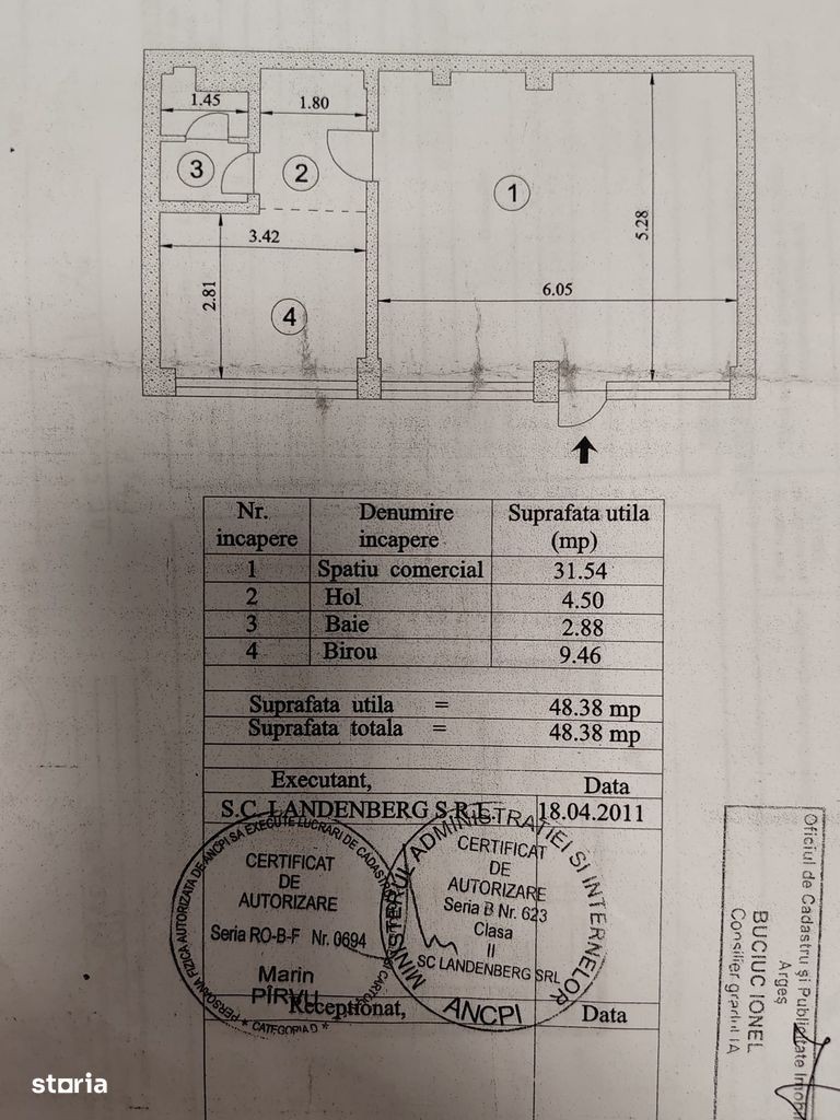 Închiriez spatiu comercial in Mioveni, zona Piata, pretabil birouri, salon, frizerie, cu suprafata de 50 mp, front cu vitrine si luminos. Spatiul comercial este dotat cu grup sanitar, curent, apa, canalizare, gaze naturale. Incalzire cu centrala termica