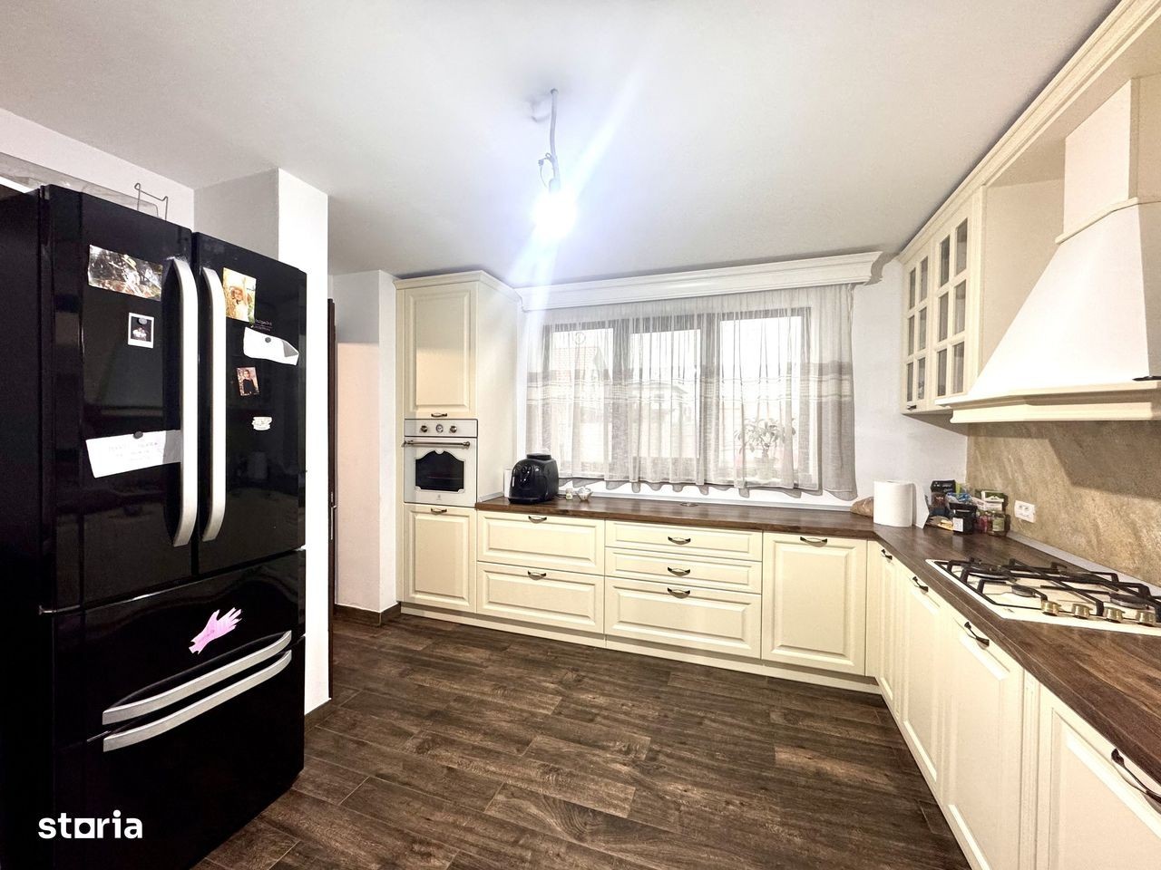 Va propunem spre vanzare casa individuala in stil neo-clasic, in regim de inaltime P+1E+M, in Dumbravita- Bld. Ion Creanga, cu suprafata utila de 162 mp si teren de 700 mp. Compartimentare: - Parter: living cu iesire pe terasa, bucatarie inchisa, baie, camera tehnica, terasa acoperita - Etaj: hol, 3 dormitoare, baie cu cabina de dus - Pod Dotari tehnice si dotari: * Toate utilitatile (apa de la retea, canalizare, gaz, curent) * Panouri solare pentru un consum redus de costuri * Sistem de alarma * Scara interioara din lemn de stejar stratificat * Uși interioare din stejar stratificat Imobil este situat pe strada inchisa, cu trafic redus - ideal pentru liniște și siguranta. Confortul termic este asigurat de centrala proprie cu incalzire prin pardoseala si de sistemul de climatizare. Casa se vinde semi-mobilata si utilata. Imobilul are clasa energetica A. Pret: 370.000 euro. Comision 0 pentru cumparator! Pentru mai multe detalii, ne puteti contacta telefonic: