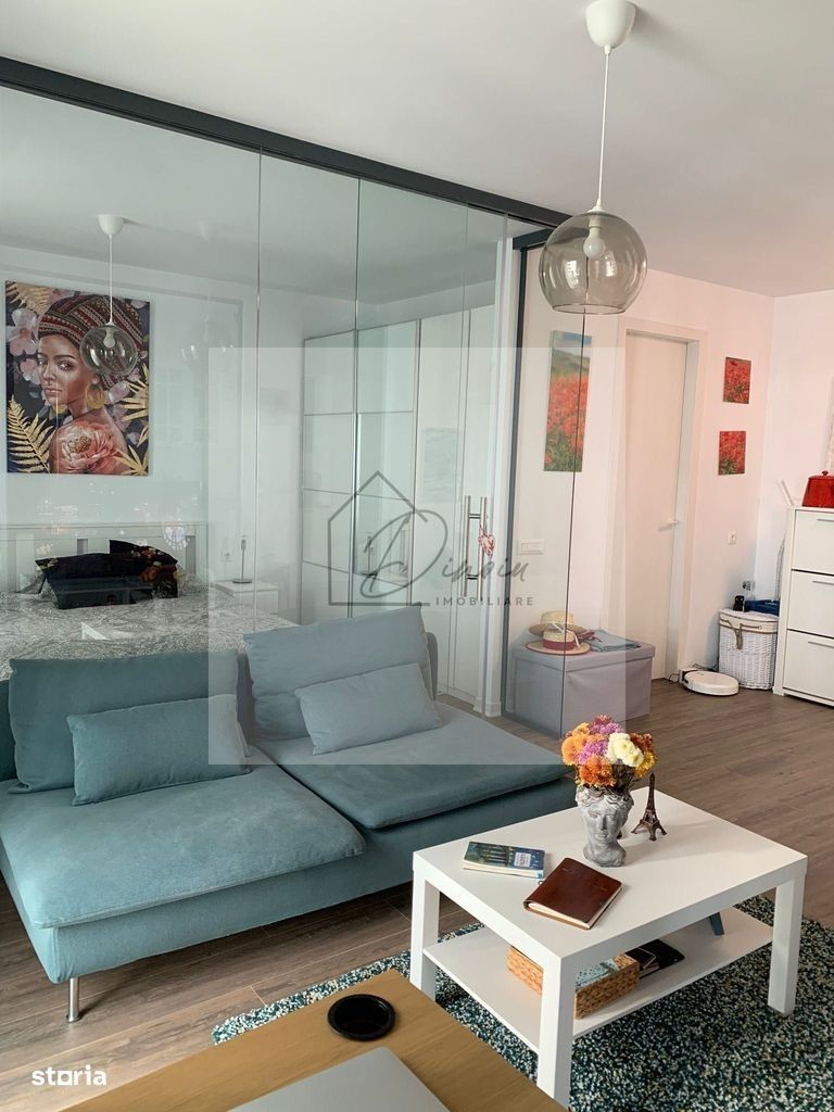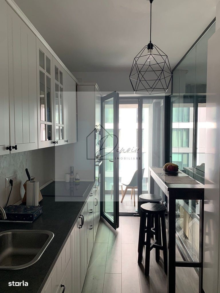 Va ofer spre inchiriere apartament cu 2 camere premium, unde va veti simti acasa, in al noualea cer! Proprietatea se afla in Complexul Premium Cloud 9, langa Promenada Mall, langa statia de Metrou Aurel Vlaicu (700m) si la 15 minute de mers pe jos fata de Parcul Herastrau, fiind complet mobilata si utilata, la cele mai inalte standarde si in cel mai mic detaliu. Apartamentul este la etajul 3/11, cu vedere panoramica catre gradinile interioare, cu suprafata utila de 50 mp, cu o compartimentare eficienta si moderna a spatiilor, dupa cum urmeaza: - living cu zona de relaxare si zona de birou: TV; multiple spatii de depozitare; acces catre balcon - bucatarie semi-inchisa, cu zona de diding; complet utilata cu electrocasnice premium, incorporabile; acces catre balcon - dormitor luminos cu un dressing generos pe un peret intreg, pat matrimonial; aer conditionat - baie spatioasa cu cada - balcon acoperit, amenajat cu vedere catre gradinile interioare,; cu acces din living si bucatarie - 1 loc de parcare la -2 inclus in pret; acces cu liftul Dotari apartament & complex: - lumina calda de tip LED si pereti din sticla - aspirator Karcher, masina de calcat si altele, dar si de cablu TV si internet incluse. - sistem de incalzire centralizat cu programare si reglare wireless a temperaturii pentru fiecare camera, - fatada ventilata, 2 lifturi Kone pe tronson, monitorizare video si paza non-stop. Conditii de inchiriere: pret chirie lunara 650 eur - contract minim 1 an; 1 luna avans + 1 luna garantie - NU sunt acceptate animalele de companie; NU se fumeaza in interiorul apartamentului. Va invit sa programati o vizionare in al 9 lea cer! Alina Dinoiu