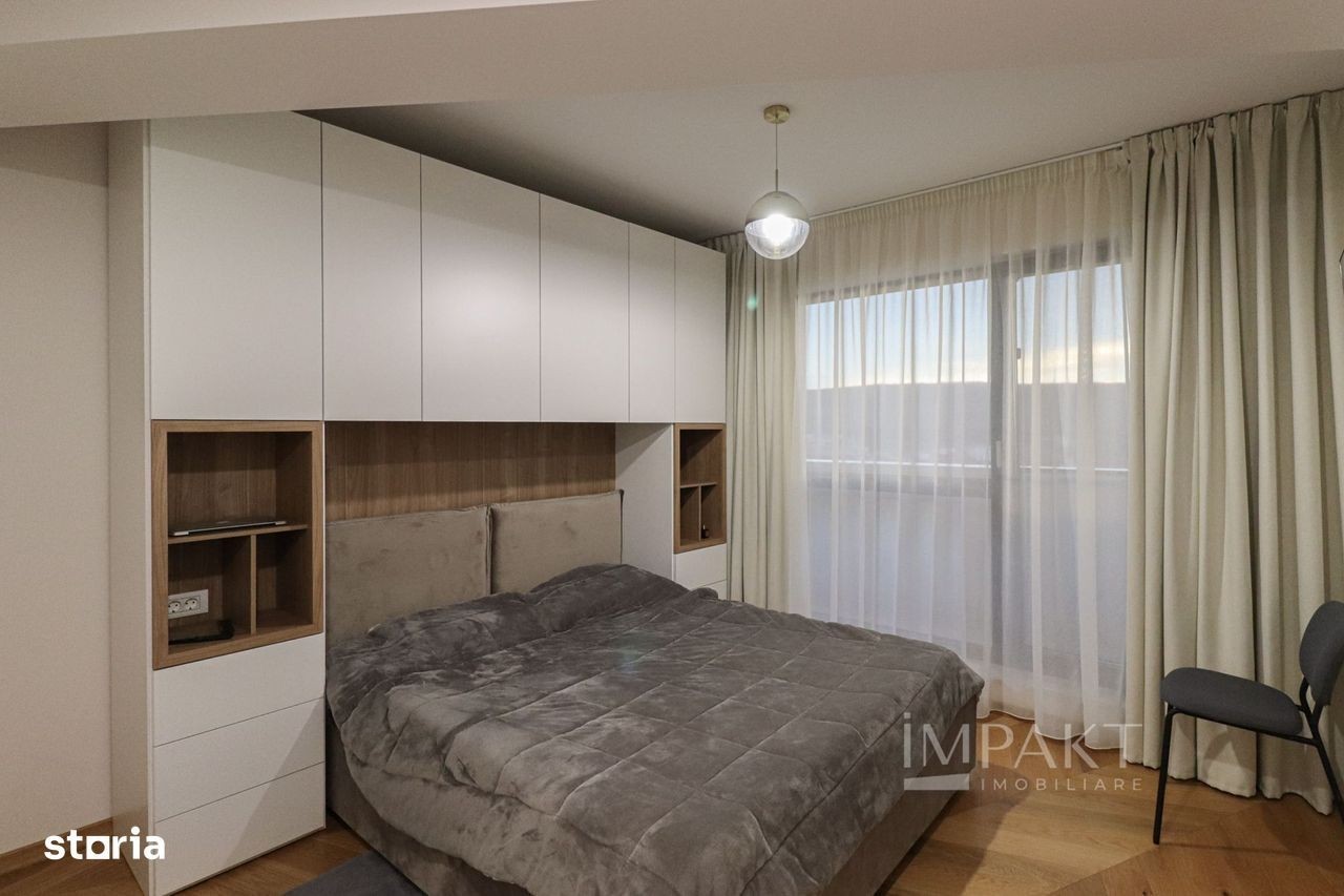 Impakt Imobiliare va propune spre Inchiriere un apartament deosebit cu 2 camere, situat in ansamblul Wings! Apartamentul dispune de o suprafata utila de 63 mp si este compartimentat astfel: o bucatarie complet utilata impreuna cu livingul si acces la balcon, dormitor, o baie si doua balcoane. Acesta se afla la etajul 4 unui imobil cu 15 etaje constructie noua si dotat cu 2 lifturi+ intefon. Imobilul dispune de certificat energetic clasa A. Apartamentul detine finisaje de LUX precum gresie, faianta, parchet laminat, geamuri termopan, incalzire prin pardoseala, centrala termica individuala, mobilier la baie, masina de spalat rufe/vase, cuptor electric, plita electrica, hota, frigider smart TV, frigider, bucătăria complet utilata si se inchiriaza complet mobilat si utilat conform fotografiilor de prezentare. Pentru confortul dumneavoastra apartamentul detine si un loc de parcare subteran. Apartamentul se afla in apropierea statiilor de autobus, a farmaciilor, a magazinelor si a altor puncte de interes, imobilul beneficiaza de spatii verzi si priveliste deosebita. Pentru mai multe detalii sau pentru a progama o vizionare va asteptam la sediul agentiei noastre sau ne puteti suna la numerele de telefon afisate.