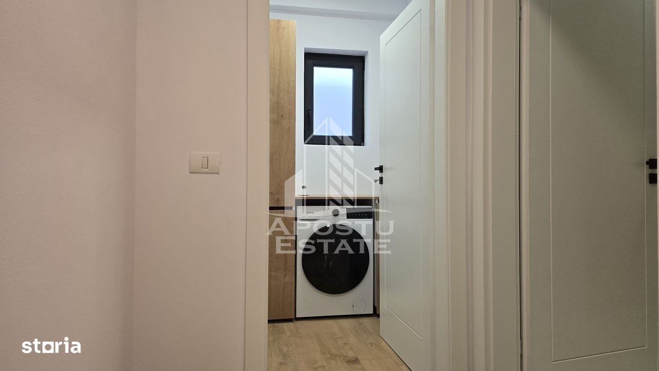 Apostu Estate va propune spre inchiriere un apartament spatios si modern, 2 camere, 60 mp utili, open-space, terasa 35 mp, etaj 2/2, prima inchiriere, situat in Mosnita Noua, intr-o zona linistita si accesibila. Ideal pentru o familie sau pentru cei care doresc un spatiu generos. Detalii proprietate: Camere: 2 (1 dormitor) Bai: 1, complet mobilata Bucatarie si baie: complet mobilate si utilate Electrocasnice incluse: masina de spalat vase, masina de spalat rufe cu uscator, combina frigorifica, plita electrica, cuptor electric, hota Confort termic: incalzire in pardoseala si centrala termica Locuri de parcare: 1 Conditii financiare: Chirie: 600 € Garantie: echivalentul a doua chirii, 3 luni pentru animale de companie Contract: se face la ANAF, minim 1 an Vecinatati: Profi, Lidl, Kaufland, scoala, dispensar, benzinarie ESO. Proprietatea este ideala pentru cei care cauta un camin confortabil si bine echipat, intr-o locatie convenabila, in Mosnita Noua, si accepta animale de companie. Oferta ID CP2852701