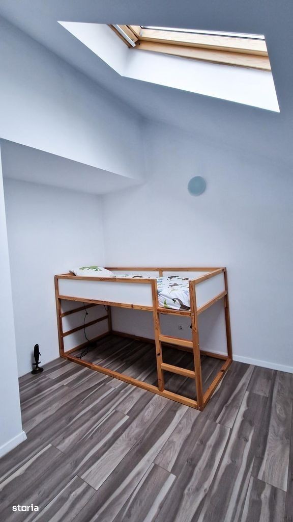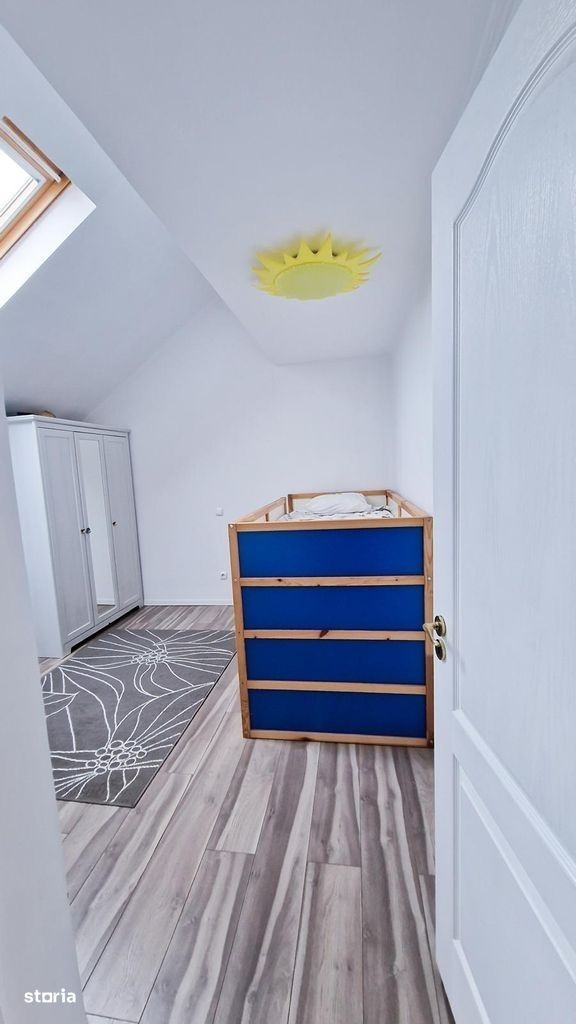 Casa individuala cu 3 dormitoare, living spatios cu bucatarie deschisa, 2 bai, spatiu tehnic, pod spatios, cos pentru semineu/soba, terasa acoperita, curte amenajata cu spatiu gradina, gazon si pomi fructiferi. Suprafata utila aproximativ 128 mp + terasa. Casa are potential de dezvoltare. Se poate marii semnificativ suprafata utila prin inchiderea terasei (+20 mp). Terenual are aprximativ 660mp. Toate utilitatile sunt instalate.