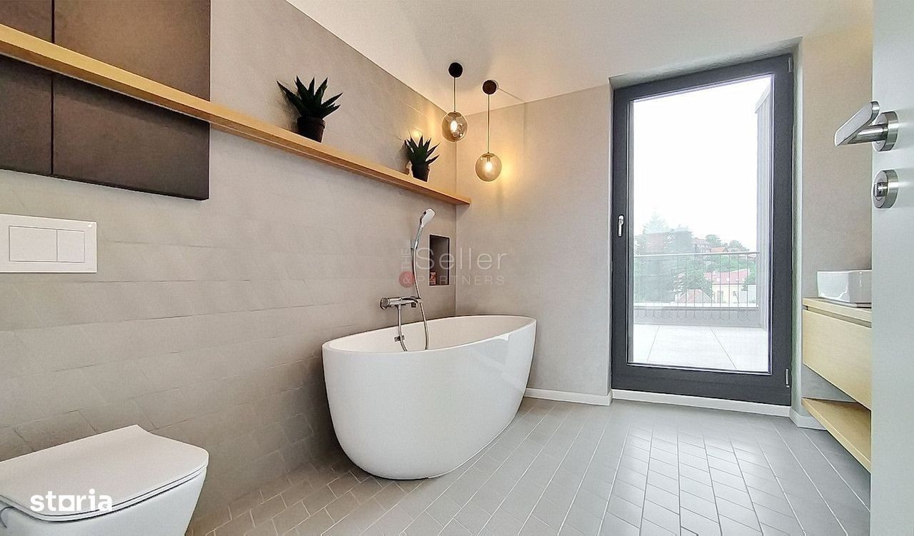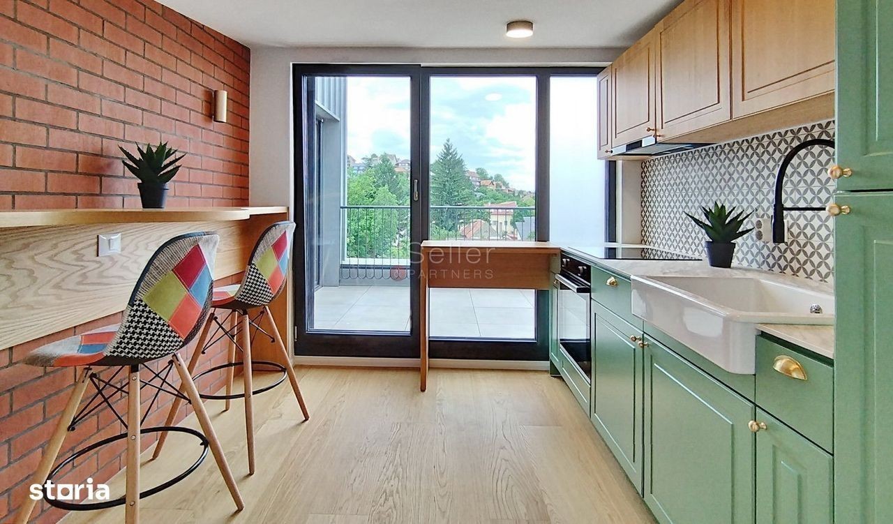 LOCALIZARE: Acest imobil este situat in zona Brasovul Vechi, in imediata apropiere a Operei Brasov, la 2-3 minute distanta de Scoala Generala Nr.12. COMPARTIMENTARE: - Livingul, are inclus in spatiul util si zona de dinning, dotata cu mobilier adecvat. Acesta are deschidere la terasa si beneficiaza de o priveliste aparte, asupra orasului. - Bucataria inchisa, pozitionata vestic, detine suprafata vitrata mare si deschidere la terasa, fiind complet mobilata si echipata la standarde moderne; - Dormitorul insorit, mobilat complet, detine finisaje deosebite, cu spatii vitrate mari si pozitionare sudica; - Baia, cu aerisire naturala, are inclusa o cada freestanding si acces la terasa. DOTARI: - tamplarie PVC, cu geam termopan; - usa metalica; - incalzire in pardoseala; - mobilat si utilat, la standarde premium; - loc de parcare subteran; - aer conditionat. Tranzactionarea proprietatii se va face cu mobilierul aferent prezentei ofertari. Imobilul este situat intr-o zona de vile, accesul auto, pana la zona de centru a orasului, facandu-se in cca. 4 minute. ATRACTII ZONA: Magazine, cafenele, restaurante, școli, spitale. ACCESIBILITATE: Transport public în apropiere | la aproximativ 100 m. NOTA: Perioada Minima Inchiriere Acceptata: 12 luni; Locatorul nu accepta animale de companie. Informatiile prezentate reflecta situatia reala a proprietatii, fara a constitui o oferta contractuala. Aceste date au fost obtinute verbal, de la titularul de drept al imobilului. Structura acestei prezentari nu poate fi reprodusa, fara acordul scris al The Seller and Partners.
