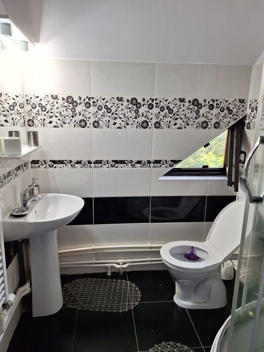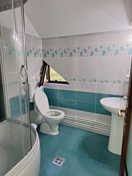 Clădirea se afla în centrul orașului Sovata, un loc foarte discret și o adevărată oaza de liniște. La cativa pași pana la piata de zi, aproape de Penny, de grădiniță, de școală. Este formata din cinci camere,cinci bai, bucătărie, holuri, terasa mica la etaj, terasa generoasa la parter, filagorie, loc de grătar. 800 mp teren, amprenta casei este de 191 mp în totalitate parterul are 95 mp+50 mp terasa de la parter.Anul de construcție 1960 parterul casei, fundație piatra,construcție caramida,mansardarea pe structura de lemn și renovarea totala a casei a fost făcuta în 2015. Izolata cu polistiren 8, gaz, apa, canalizare racordata la canalizarea orașului, TV, wifi,panouri solare montate recent.