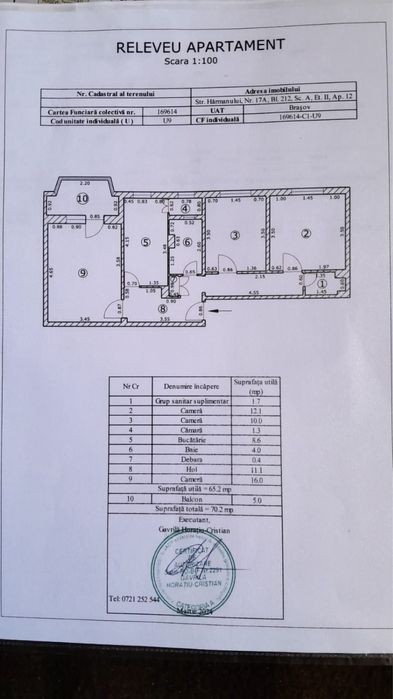 RentAway Brasov vă propune spre vânzare apartament cu 3 camere, decomandat, situat in Centrul Civic (CEC) intr-un imobil construit in anul 1980. Este ideal pentru cei care doresc să locuiască într-o zonă centrală și accesibilă cu acces facil spre centrul Istoric si Universitate, atat pe jos cat si cu mijloacele de transport in comun aflate in proximitate. Apartamentul poziționat la etajul 2 din 4, este spațios cu o suprafata utila de 65 mp. Este compus din 2 dormitoare, sufragerie, 2 băi, hol de acces, bucătărie, cămară și balcon de 5 mp. Apartamentul este este dotat cu centrală termică, mobilat si utilat. Prețul este de €130000. Pentru a programa o vizionare vă rugăm să ne contactați la tel. 07******60.