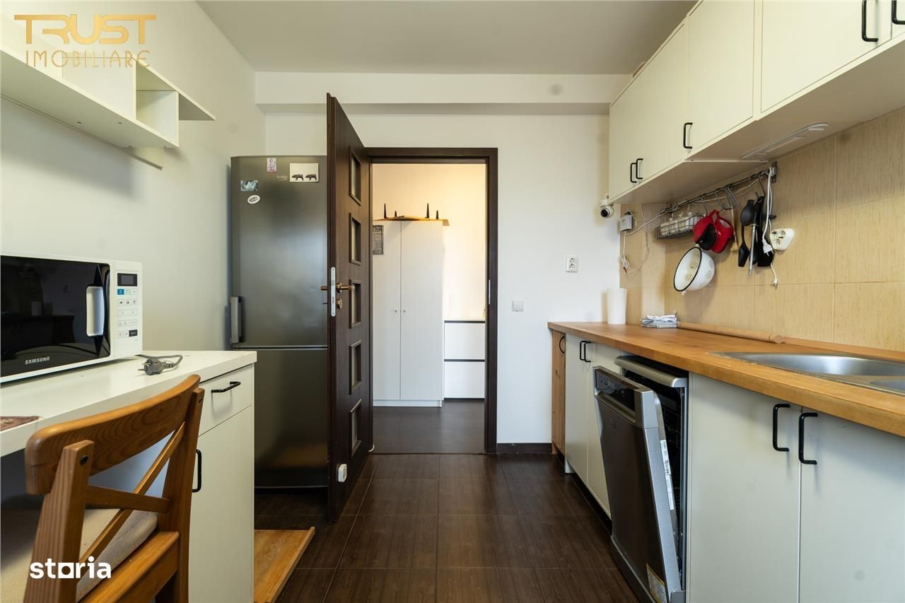 Trust Imobiliare va propune spre vanzare un apartament cu 2 camere, situat pe strada Inului, intr-o zona linistita si bine conectata la punctele de interes ale orasului. Apartamentul este amplasat la etajul mansarda, fara tesituri, si are o suprafata utila de 52 mp, completata de un balcon de 3 mp. Locuinta a fost reimprospatata recent si este gata pentru mutare imediata. Compartimentarea este practica si bine gandita. La intrare regasim un hol dotat cu pantofar si cuier. Bucataria este complet echipata, beneficiind de electrocasnice mici, masina de spalat vase, aragaz, cuptor, frigider, centrala termica si blat de lucru generos. Livingul este spatios si multifunctional, amenajat cu birou pentru doua persoane, zona de relaxare cu coltar, masuta de cafea si televizor, avand totodata acces direct pe balcon. Confortul este completat de aer conditionat. Dormitorul este mobilat cu pat matrimonial, noptiere si un dulap incapator cu cinci usi. Baia dispune de cada, masina de spalat rufe, dulap pentru depozitare si geam pentru aerisire naturala. In plus, apartamentul beneficiaza de o debara ce poate fi folosita ca dressing. Pentru mai multe detalii si vizionari, nu ezitati sa ne contactati! DI: TRS9612