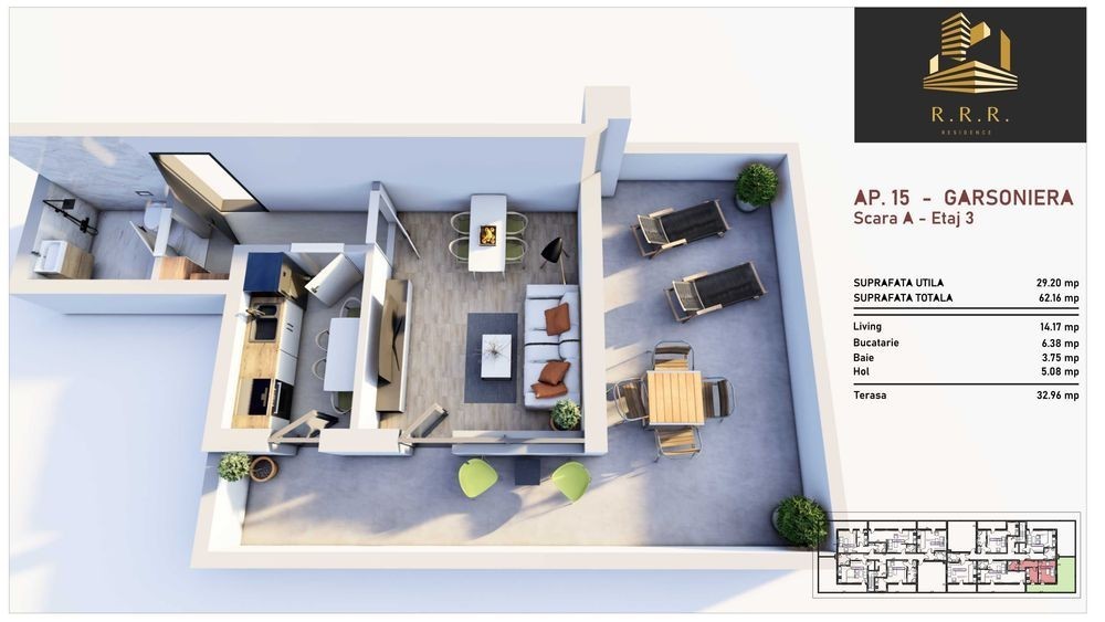 Direct dezvoltator va prezinta spre vanzare o garsoniera situata la etajul 3 al unui imobil nou de locuinte colective D+P+2E+3ER situat pe Soseaua Giurgiului 218A, sector 4, Bucurestii, imobil ce se preda in folosinta in ianuarie 2026. Imobilul se afla situat in fata statiilor de tramvai 7, 11, 25, autobuz ********** si la 6 statii tramvai fata de statia de metrou Eroii Revolutiei. Imobilul in care se afla garsoniera este construit pe cadre de beton, zidarie bca de 30 cm la exterior, izolat cu polistiren de 10 cm si vata bazaltica, bransat la apa si canal, gaze naturale si energie electrica. Garsoniera are suprafata de 36,40 m.p si este compartimentata astfel living 16,10 m.p,bucatarie 5,60 m.p, baie 4,90 m.p, hol 2,04 m.p si balcon de 7,90 m.p si este dotata cu incalzire in pardoseala teava pexA, instalatii sanitare pe teava pexa, centrala termica in condensatie FERROLI, usa metalica izolata cu vata bazaltica de la Bella Casa, geamuri tripan gri antracit Gealan. Garsoniera se vinde bransata la toate utilitatile, cu mobilier de baie, in prezent fiind la stadiul de vinarom viitorul proprietar putand sa aleaga finisajele interioare modele si nuante de usi,gresie, faianta, parchet. Termen predare ianuarie 2026. Pretul de vanzare este de 51500 plus tva