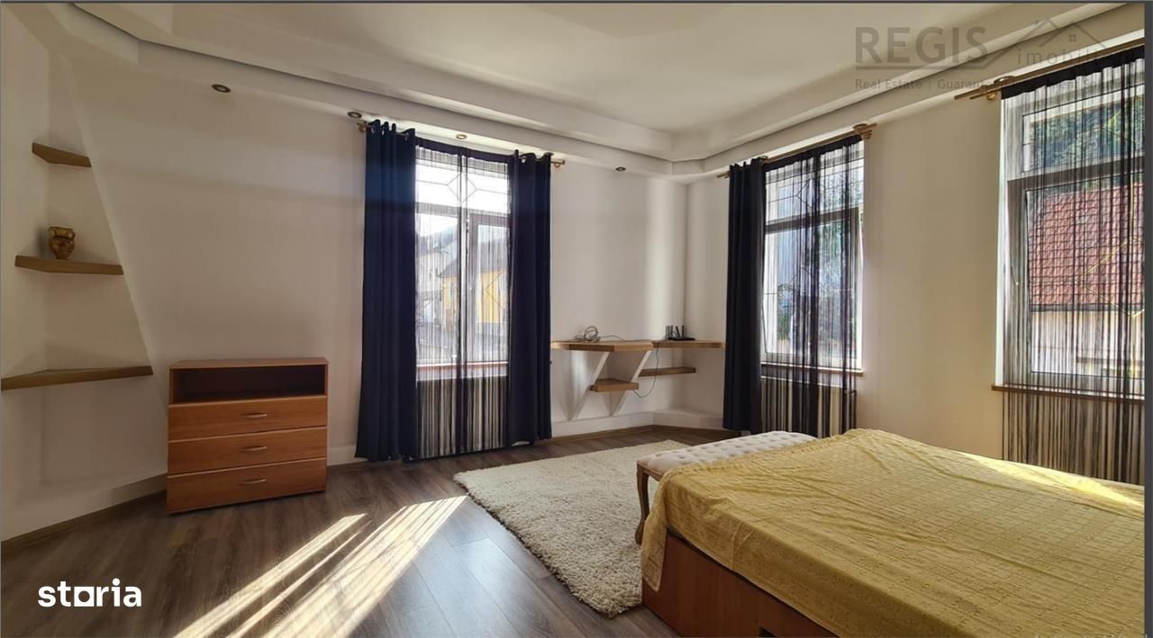 ID intern: 6266 Regis Imobilare va prezinta spre inchiriere, o casa cu 4 camere si curte individuala,situata in Schei. Regasim aceasta proprietate la cateva minute de mers pe jos din Piata Unirii,pe o strada linistita,cu case cochete si vecini prietenosi. Formata din 4 camere mobilate,bucatarie si 2 bai, avand acces auto in curte,proprietatea este ideala pentru o familie cu copii dar si pentru persoane care lucreaza de acasa sau studenti. Terasa generoasa si zona de barbeque,ofera un spatiu de ralaxare si socializare. Accesul facil la mijloacele de transport ale caror statii sunt in imediata vecinatate,fac deplasarea catre si dinspre oras foarte usoara. Incalzirea se face cu centrala termica proprie. Prietenul dumneavoastra blanos este binevenit. Comisionul agentiei este de 50%+TVA,o singura data la semnarea contractului.