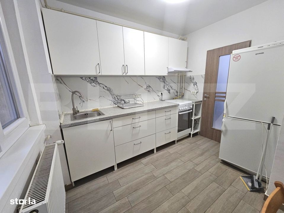 Blitz vă prezintă pentru închiriere un apartament cu 3 camere, semidecomandat, confort 1, situat la etajul 3 din 4. Apartamentul este format din hol generos, bucătărie închisă, mobilată și utilată, living spațios cu spații de depozitare și acces la balcon, baie cu duș și două dormitoare, la care accesul se face printr-un hol separat. Imobilul are o suprafață utilă de 65 mp și a fost renovat complet în anul acesta, oferind un ambient modern și confortabil. Locuința se află în una dintre cele mai căutate zone din oraș, cu acces facil către punctele de interes, într-o zonă liniștită. Dacă v-am trezit interesul, vă așteptăm la o vizionare.