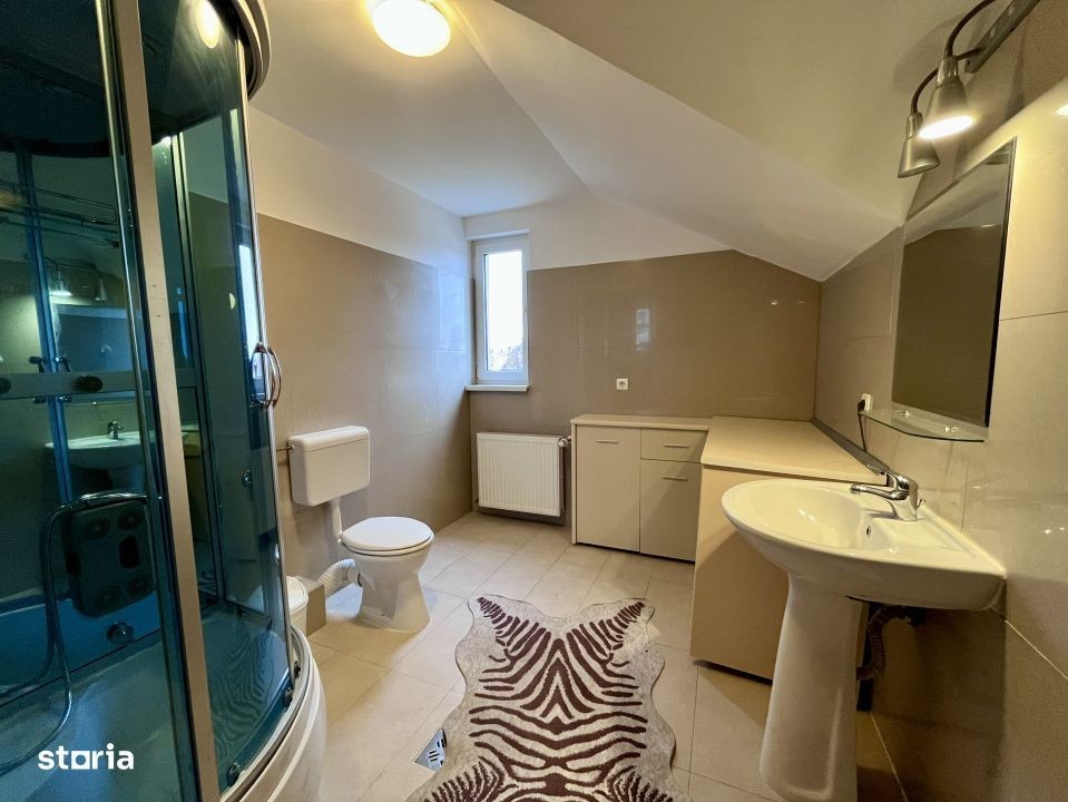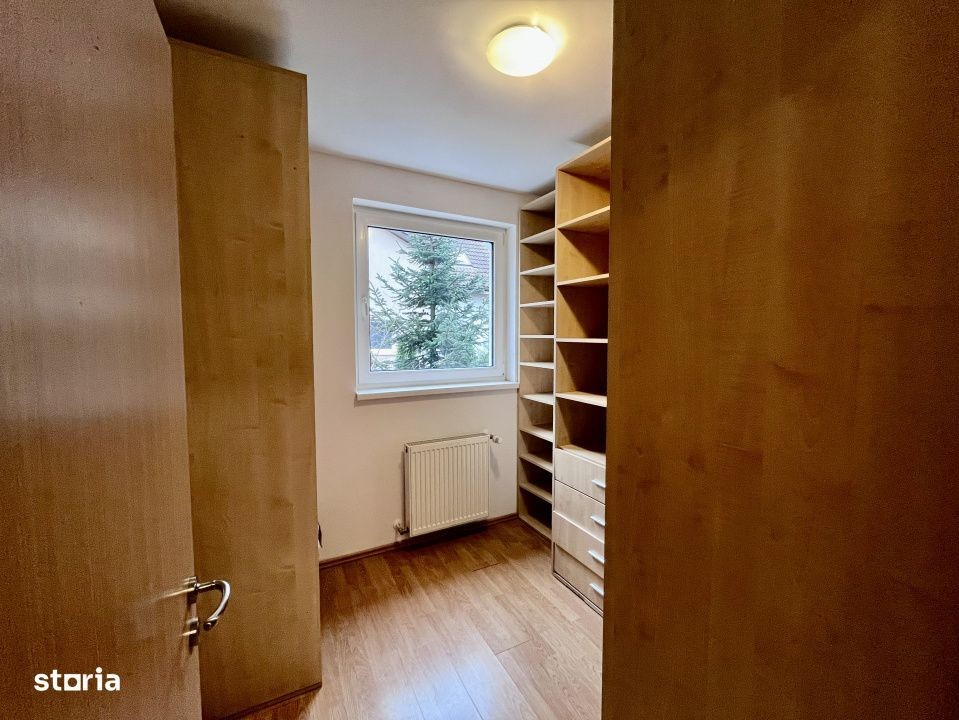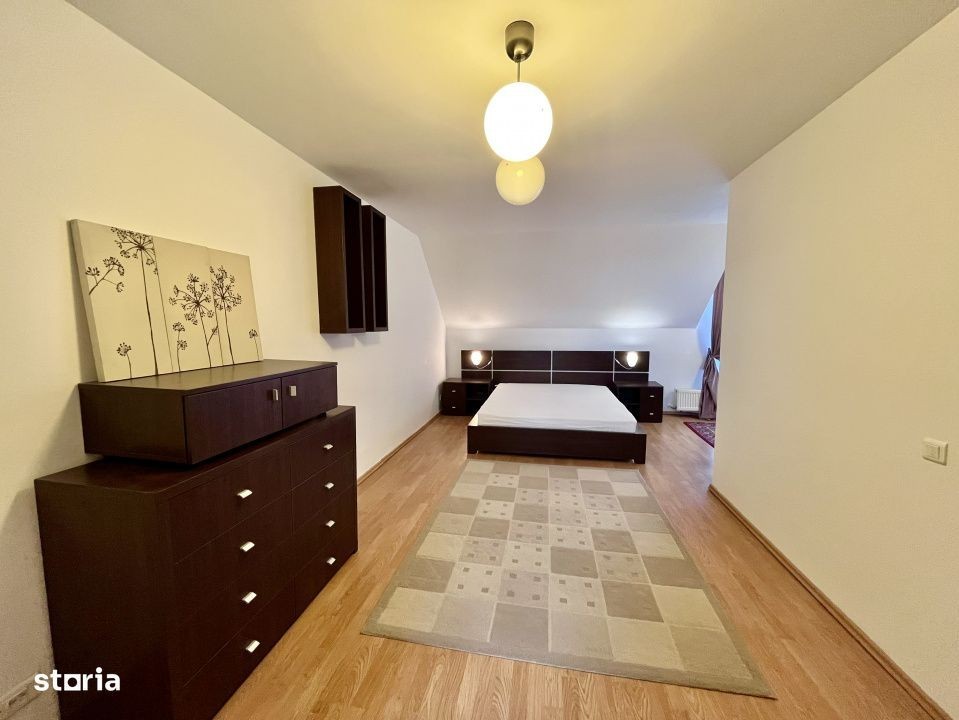 Kronhouse Real Estate vă propune spre închiriere un apartament de 4 camere situat într-o casă din Complexul Green Valley, în imediata apropiere a Lacului Noua și la doar câteva minute de Grădina Zoologică. Locuința beneficiază de o suprafață generoasă, de aproximativ 135 mp, fiind compartimentată pe regim P+1+M și complet mobilată și utilată. De asemenea, dispune de o terasă tip grădină de circa 30 mp, ideală pentru relaxare. Compartimentare: Parter: bucătărie open-space cu living, grup sanitar de serviciu, debara și acces către terasa tip grădină. Etaj 1: două dormitoare luminoase, dressing și baie prevăzută cu cadă. Mansardă: dormitor, dressing și baie cu duș. Proprietatea oferă un loc de parcare în cadrul complexului. Nu se acceptă animale de companie și nu se închiriază studenților. Utilitățile nu sunt incluse în chirie, iar la prețul afișat se adaugă T.V.A. de 21%. Condiții de închiriere: o lună de chirie în avans, garanție de 900 EUR și comisionul standard al agenției de 50%. Pentru informații suplimentare, vă stăm cu drag la dispoziție.
