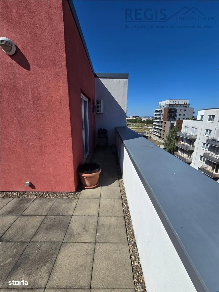 ID : 5751 REGIS Imobiliare va propune spre inchiriere un apartament tip penthouse cu 2 camere in zona Avantgarden Bartolomeu Penthouse-ul este situat la etajul 5 5 intr-un bloc de constructie 2008 dispune de loc de parcare suprateran, boxa si spatii multiple de depozitare. Complexul rezidential Avantgarden este recunoscut pentru proximitatea tuturor facilitatilor necesare, supermarket, statie de autobuz, farmacii, parcuri de joaca si agrement, magazine de interes, mall, scoli si gradinite. Se inchiriaza pe termen lung, pretul este usor negociabil in functie de contractul dorit. COMISION : 50% Bine Ati Venit Acasa