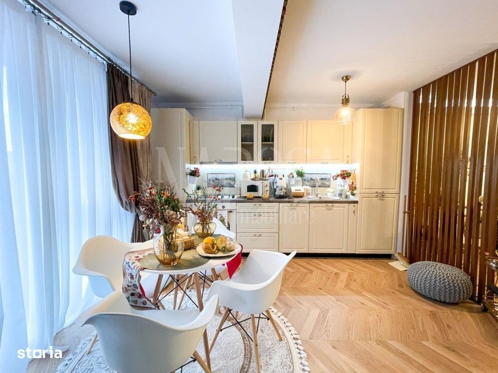 Apartament MODERN cu 2 camere de 54 mp, zona Baza Sportiva Gheorgheni! Va oferim spre vanzare un apartament modern cu 2 camere situat intr-un cartier nou al orasului Cluj-Napoca, in apropierea Bazei Sportive Gheorgheni, cartier Sopor! Apartamentul are suprafata utila de 54 mp + balcon, si este compartimentat astfel: - living open space cu bucatarie; - dormitor; - baie moderna; - balcon. Apartamentul este situat la etajul 3 intr-un imobil cu 8 etaje construit in anul 2023 si este orientat Vest, fiind un apartament luminos in special in a doua parte a zilei! Apartamentul dispune de finisaje moderne si elegante, dintre care amintim: parchet laminat, gresie si faianta moderna, mobilier de bucatarie realizat pe comanda, electrocasnice moderne, avand un design elegant si primitor! Confortul termic este asigurat de centrala termica proprie cu incalzire in pardoseala! Datorita zonei in care este situat, apartamentul are in imediata apropiere statie de autobuz, parcuri, magazine, avand accesibilitate ridicata fata de institutii de invatamant si Iulius Mall la aproximativ 8 minute cu transportul in comun. Locuinta se vinde de catre o persoana jurica, pretul avand TVA de 21% INCLUS in pret, avand posibilitatea achizitiei cu taxare inversa. Recomandam acest apartament atat pentru locuit, cat si pentru investitie, generand in prezent un venit din inchirierea in regim hotelier de aproximativ 1500 euro lunar! Pentru mai multe informatii sau programarea unei vizionari, va stam cu drag la dispozitie! Echipa Napoca Imobiliare ID proprietate: VA2 157689