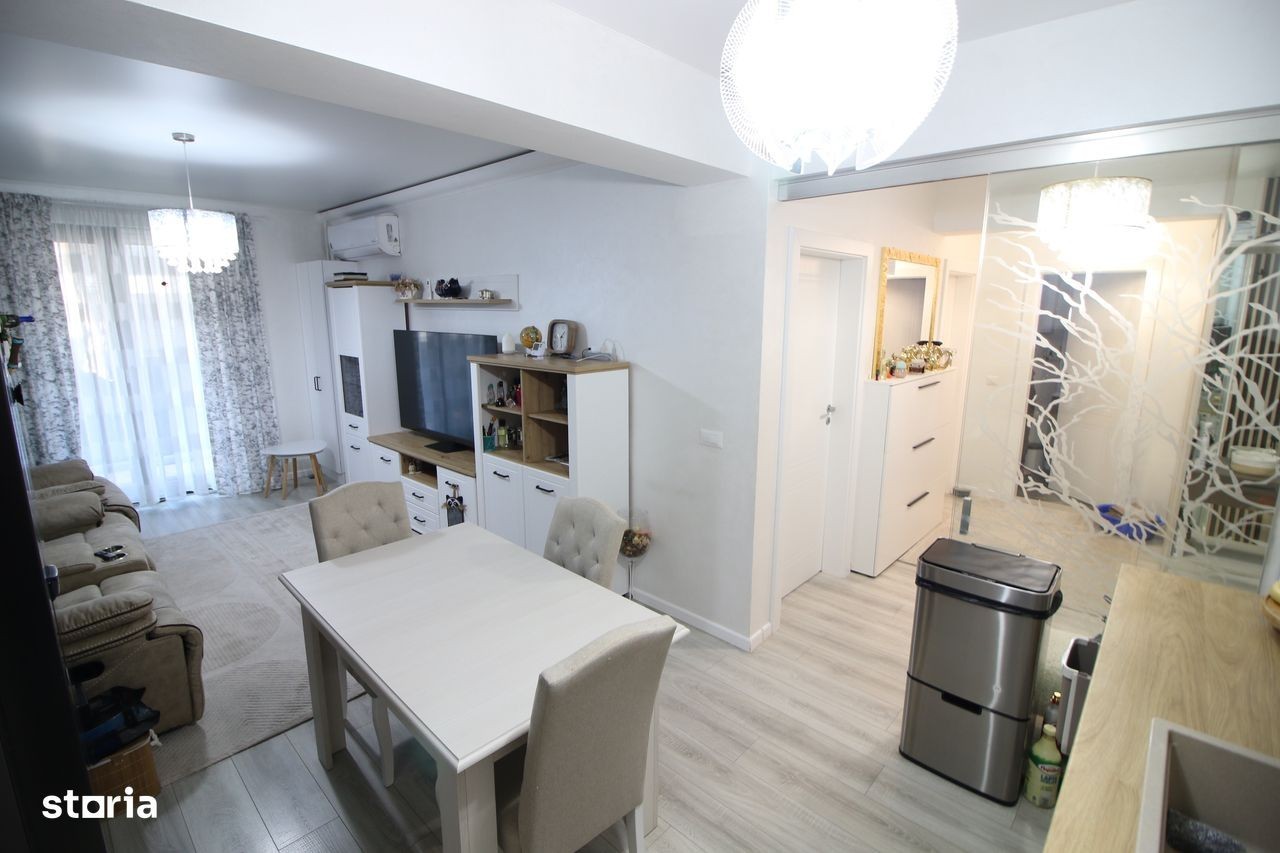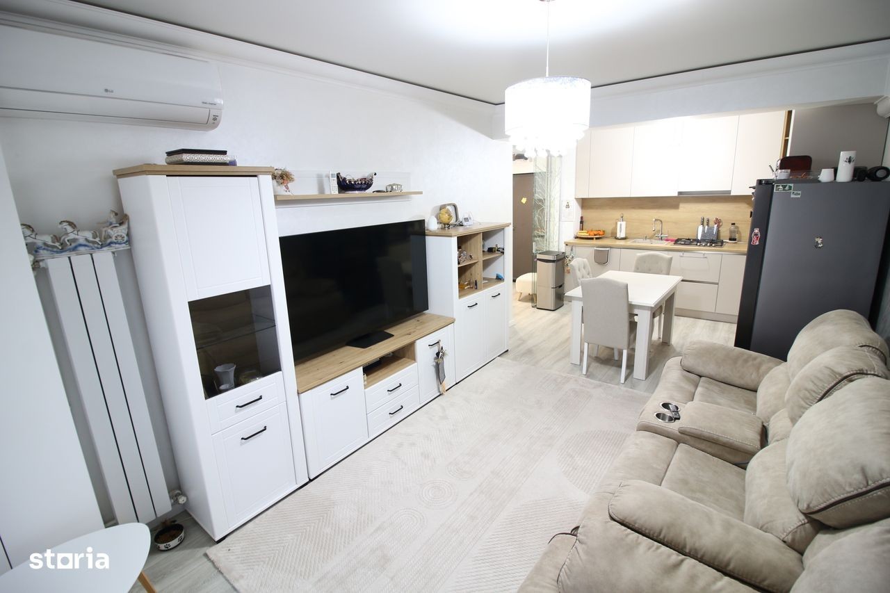 Agenția imobiliară Domus vă propune spre vânzare un apartament modern cu 3 camere, cu o suprafață utilă de 68,3 mp, situat în complexul Arcada, la intersecția străzilor Tecuci și Crizantemelor intr-un bloc finalizat în 2022, la etajul 2 din 5. Locuința se remarcă printr-o compartimentare eficientă și un ambient luminos, compus dintr-un living spațios cu bucătărie open-space, amenajată cu mobilier realizat la comandă de Keros design, 2camere complet mobilate si un grup sanitar.