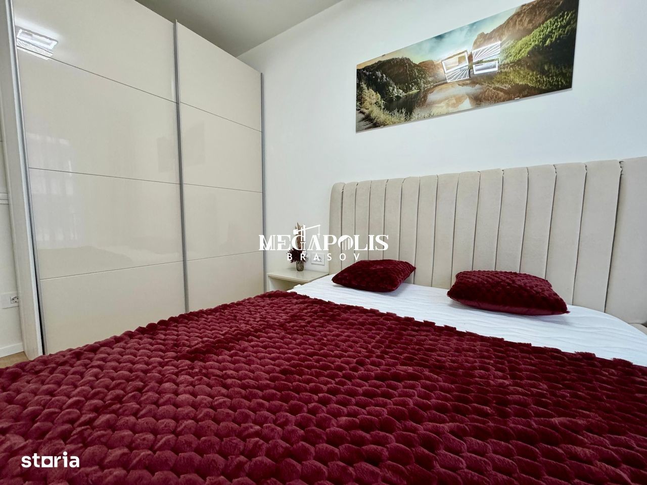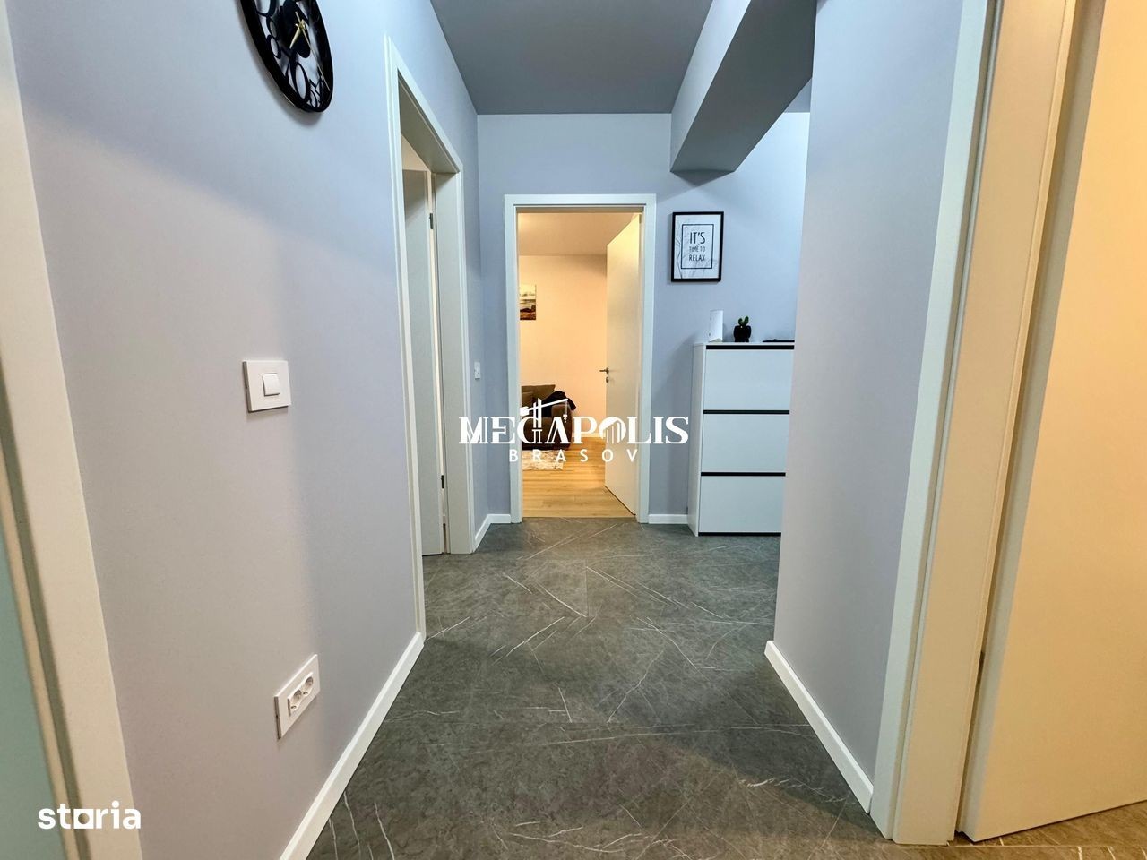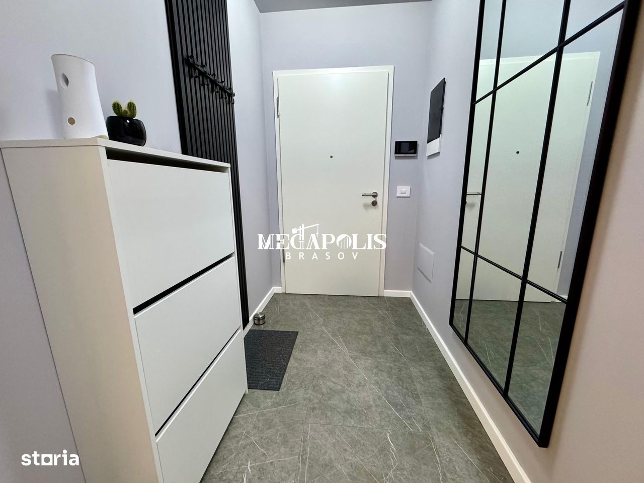 Vă oferim spre închiriere un apartament modern cu 2 camere decomandat, situat în cartierul rezedenţial Kasper, la doar câteva minute de Coresi Shopping Resort. Detalii apartament: - Suprafață: 5 mp - Compartimentare: dormitor, living, bucătărie separată, baie, hol, debara. - Mobilat și utilat complet - Electrocasnice: frigider, mașină de spălat rufe, mașină de spălat vase, cuptor, plită, TV. - Încălzire in pardoseală. Facilități incluse în preț: - Loc de parcare propriu Detalii importante: - Garanție 750 € - Comision agenție: 50% din chiria primei luni. - Nu se acceptă animale de companie. Pentru mai multe detalii contactați-mă telefonic: