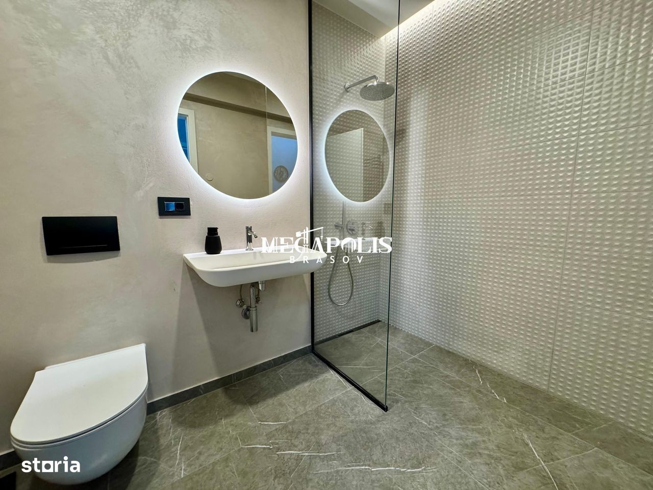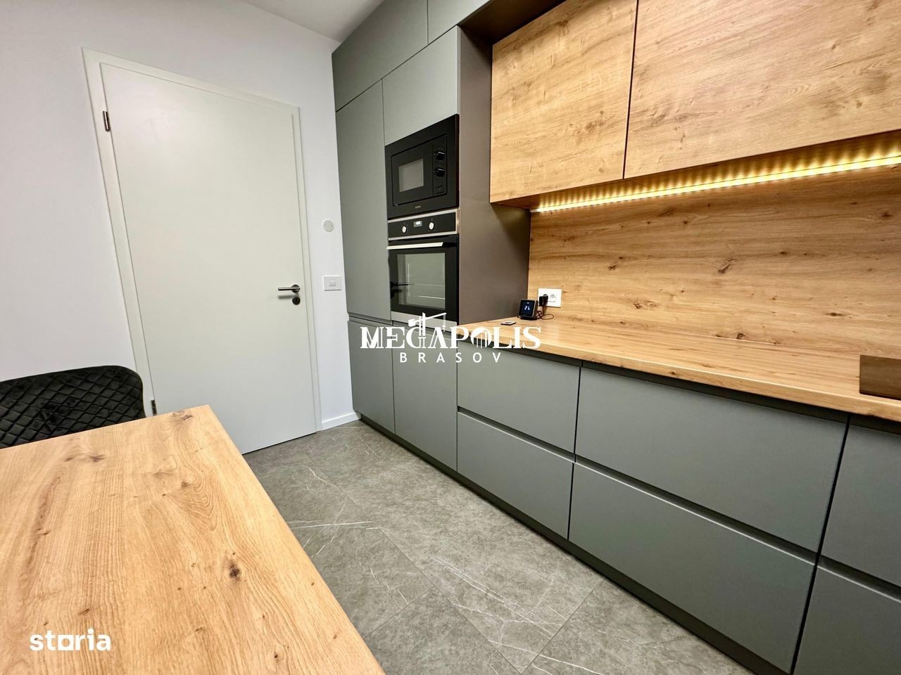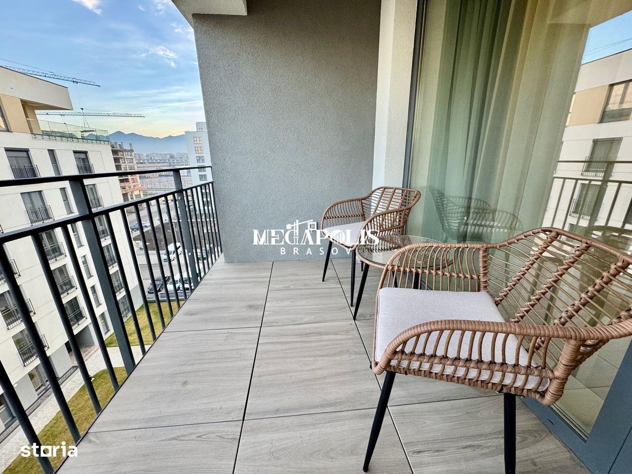 Vă oferim spre închiriere un apartament modern cu 2 camere decomandat, situat în cartierul rezedenţial Kasper, la doar câteva minute de Coresi Shopping Resort. Detalii apartament: - Suprafață: 5 mp - Compartimentare: dormitor, living, bucătărie separată, baie, hol, debara. - Mobilat și utilat complet - Electrocasnice: frigider, mașină de spălat rufe, mașină de spălat vase, cuptor, plită, TV. - Încălzire in pardoseală. Facilități incluse în preț: - Loc de parcare propriu Detalii importante: - Garanție 750 € - Comision agenție: 50% din chiria primei luni. - Nu se acceptă animale de companie. Pentru mai multe detalii contactați-mă telefonic: