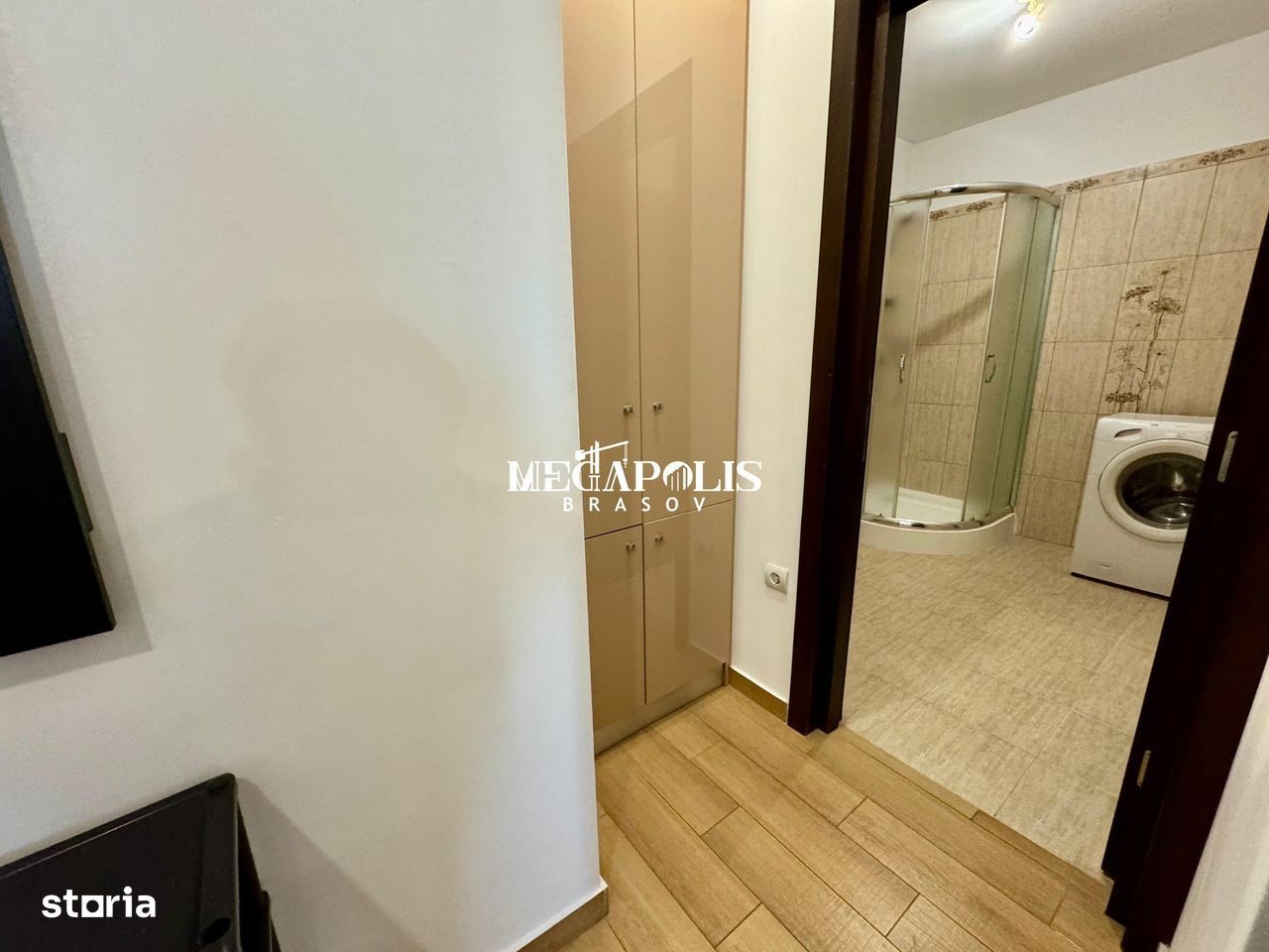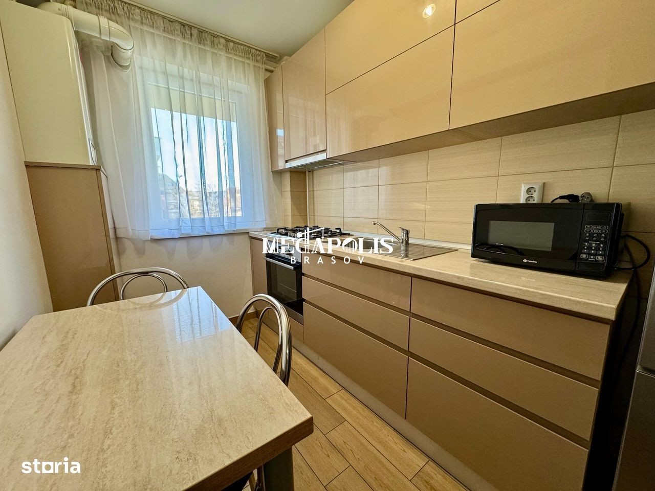 Vă oferim spre închiriere un apartament cu 2 camere decomandat, situat în cartierul Tractorul, pe George Călinescu nr. 6-8, vis-a-vis de Isaran Residence, în apropiere de Coresi Shopping Center. Detalii apartament: - Suprafață: 5mp - Compartimentare: 2 camere decomandate (living spațios, bucătărie separată, dormitor matrimonial, baie, hol) - Mobilat și utilat complet - Electrocasnice: frigider, mașină de spălat rufe, cuptor, plită, TV. Facilități incluse în preț: - Loc de parcare. Detalii importante: - Garanție 550€ - Comision agenție: 50% din chiria primei luni. - Nu se acceptă animale de companie. Pentru mai multe detalii contactați-mă telefonic:
