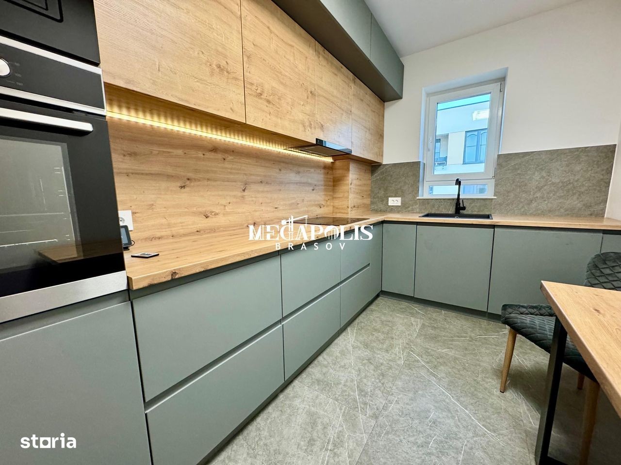 Vă oferim spre vânzare un apartament modern cu 2 camere decomandat, complet mobilat premium și finisat cu materiale de înaltă calitate. Spațiul este luminos, bine compartimentat și amenajat într-un stil contemporan, oferind confort și funcționalitate. Apartamentul este situat în cartierul rezidențial Kasper Coresi, pe strada Tudor Arghezi, la doar câteva minute de Coresi Shopping Resort. Compartimentare si detalii apartament: - Suprafață totală - 60 mp - Suprafață utilă- 50 mp - Living spațios - 19,5 mp - Bucătărie - 8,9 mp - Dormitor - 12,1 mp - Baie - 4,6 mp - Debara - 2,1 mp - Holul de acces - 7,7 mp - Balcon deschis - 5,2 mp - Apartamentul se vinde complet mobilat. - Mobilierul a fost realizat pe comandă. - Apartamentul are încălzire prin pardoseală. - Centrală pe bloc. Detalii tehnice: - Nu au fost aduse modificări structurale - apartamentul este în forma originală; Facilități incluse în preț: - Loc de parcare propriu Pentru mai multe detalii contactați-mă telefonic: