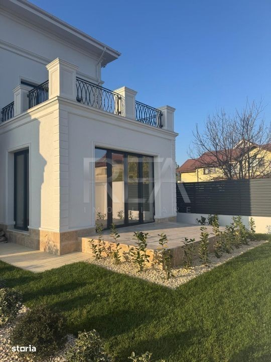 R.E.A. Imobiliare Vila individuala, intr-un cartier de case din Pipera, cu intrare cu bariera pe strada, P+1+M, construita recent la cele mai inalte standarde de calitate. Suprafata totala de 550 mp: 378 mp utili + 172 mp terasele. Curte libera 800 mp. Incalzire prin pardoseala, pompa de caldura, ventiloconvectoare, racire prin tavan. Geamuri aluminiu. CASA SE PREDA LA CHEIE, CU FINISAJELE CONFORM PROIECTULUI DIN RANDARI, SAU LA ALEGEREA CUMPARATORULUI. Configuratie: - Parter: living, bucatarie, birou, dormitoar pentru oaspeti, grup sanitar, hol, scara, debara. - Etaj: 3 dormitoare. Doua cu bai private si acces la terasa proprie, un dormitor matrimonial cu zona de dresing si baie matrimoniala, hol, scara, terasa; - Mansarda: Spatiu Open Space, baie, scara, spalatorie/cazangerie. Dispune de uun spatiu amenajat pentru parcarea a doua masini in curtea imobilului, dar prin recompartimentarea curtii din fata, se pot obtine mai multe locuri de parcare. Acces la transport public: 5 minute pana la statiile STV. Pentru detalii și vizionări, contactați-ne specificând codul de identificare P9685.