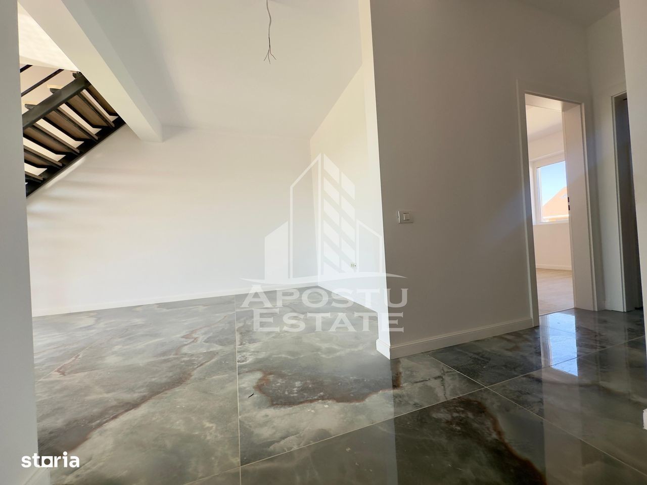 APOSTU ESTATE va propune spre vanzare un apartament de tip penthouse cu 3 camere situat in Giroc in spate la Lidl. Drumul de acces spre imobil este pietruit. In apropiere sunt magazine si supermarket-uri precum: Lidl, Mega Image, Penny, scoala si gradinita la o distanta de 10 minute, acces facil la mijloace de transport in comun. Apartamentul este complet finisat si pregatit pentru noii proprietari, precum se observa in imagini. Imobilul este situat la etajul 3 din 3. Suprafata este de 76 mp utili + terasa de 10 mp. Compartimentare: Parter: - hol acces - bucatarie si living cu scara interioara pentru acces in mansarda - dormitor - baie cu dus - terasa Mansarda: - hol acces - dormitor - dressing - baie cu cada Detalii tehnice: - constructie realizata in anul 2024 din caramida Porotherm de 30 cm. - exterior izolat cu polistiren de 10 cm eps 80, decorativa siliconata. - pereti despartitori complet din caramida (fara rigips) tencuiti mecanizat finisati cu glet si vopsea lavabila alba. - geamuri termopan cu 3 sticle pentru izolare fonica si termica superioara, foarte mari si luminoase in partea de jos. - geamuri de tip velux la mansarda. - centrala proprie pe gaz, sistem eficient de incalzire in pardoseala cu circuit separat pentru fiecare incapere. - aparataje modulare Gewis. - usa acces securizata, usi interioare albe pline. - gresie si faianta placi mari, modele actuale. - parchet de 8 mm in dormitoare. - baile sunt dotate cu obiecte sanitare. - 1 loc de parcare inscris in cf. Utilitati complete: curent, apa de la retea, canalizare, gaz, internet prin fibra optica, cablu Tv. Pretul este negociabil in functie de modalitatea de plata. Pentru mai multe detalii nu ezitati sa ne contactati! Acceptam orice fel de credit bancar. Oferim consultanta si solutii financiare prin colaboratorii nostri pentru a obtine cel mai avantajos credit Ipotecar sau Noua Casa. Va asteptam cu drag la o vizionare chiar astazi! CP2162714