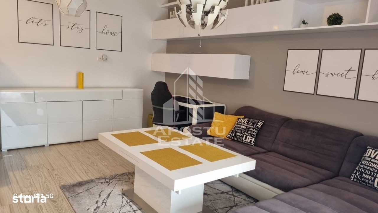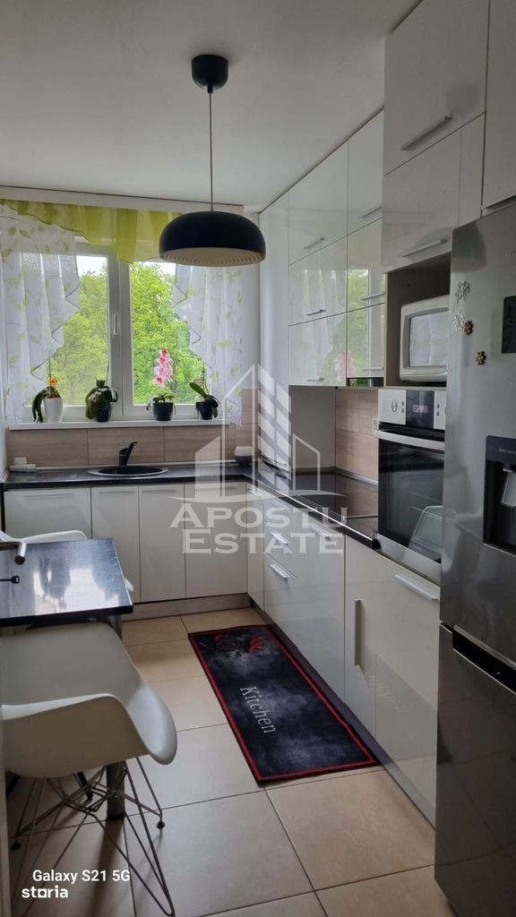 APOSTU ESTATE va ofera spre inchiriere un apartament cu 2 camere semidecomandate, aflat la etajul 5 al unui imobil cu 11 etaje, situat în zona Lipovei in apropiere de Padurea Verde la doar 5 minute de Iulius Mall si 3 minute de Bega City. Apartamentul are o suprafata utila de 56mp, compartimentata astfel: - 1 dormitor cu dressing - 1 living - 1 bucatarie cu usa si geam - 1 baie cu cada - 1 balcon tip loggie Apartamentul este la prima inchiriere si dispune de usa metalica la intrare, ferestre termopan, usi interioare din lemn si aer conditionat. Imobilul este utilat si mobilat complet, dispune de masina de spalat rufe cu uscator, masina de spalat vase, cuptor cu microunde, clima, plita electrica, hota si frigider. Baia dispune de cada. Confortul termic este realizat prin centrala pe gaz proprie si se realizeaza prin incalzirea prin pardoseala. Imobilul dispune de o priveliste superba spre Padurea Verde si loc de parcare propriu aditional la cerere. Datorita amplasarii imobilului accesul este facil catre punctele cu interes major din zona precum magazine, statiile mijloacelor de transport in comun sau unitati de invatament. ID INTERN: CP2858662