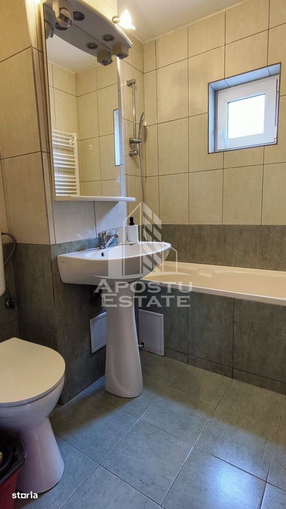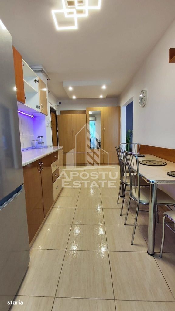 APOSTU ESTATE vă aduce în atenție un apartament cu 3 camere, confort 1, situat la etajul 3/4 în zona Torontalului. Cu o suprafață generoasă de 60 mp, această proprietate este gândită să ofere un confort deosebit: - Hol de acces spațios, oferind un bun flux de circulație; - Sufragerie luminoasă și generoasă, perfectă pentru întâlniri cu prietenii sau momente de relaxare în familie; - Un dormitor elegant și confortabil, cu un pat matrimonial pentru odihnă deplină - O camera cu canapea extensibila - Bucătărie utilată și mobilată complet, cu loc de luat masa, invocând inspirația culinară într-un mediu plin de stil; - O baie cu cada si geam - Balcon generos, unde puteți savura o ceașcă de cafea. Confortul termic este garantat de centrala proprie pe gaz și de sistemul de aer condiționat, asigurând mereu o temperatură plăcută în interior. Vecinătățile precum: - VOX Technology Park - NextFit - Lidl, Profi - Iulius Town Aceste vecinatati adaugă valoare acestei proprietăți, oferind acces rapid la facilități și servicii de top. Vă invităm cu căldură să programați o vizionare pentru a explora personal toate aspectele acestei proprietăți de excepție. ID intern: CP2012631.