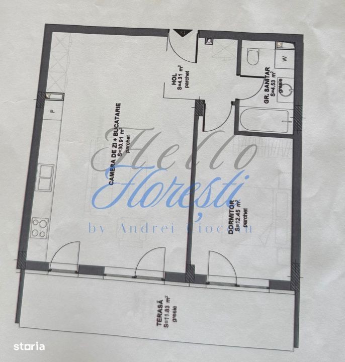Va propunem spre vanzare apartament cu 2 camere, decomandat, in Floresti, zona Eroilor. Proprietatea dispune de o suprafata utila de 55,06 mp, fiind compartimentat astfel: - 1 dormitor - 1 baie - 1 bucatarie open space cu livingul - 1 hol - 1 terasa de 8,18 mp Separat se plateste pretul terasei de 400€/mp adica 3.272€ Exista posibilitatea de achizitionare a parcarii la pretul de 7000€ Pretabil atat pentru investitie cat si pentru locuinta personala. Pentru mai multe detalii sau programarea unei vizionari folositi ID Extern: P2870