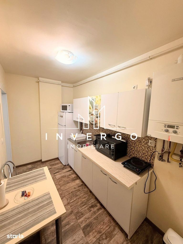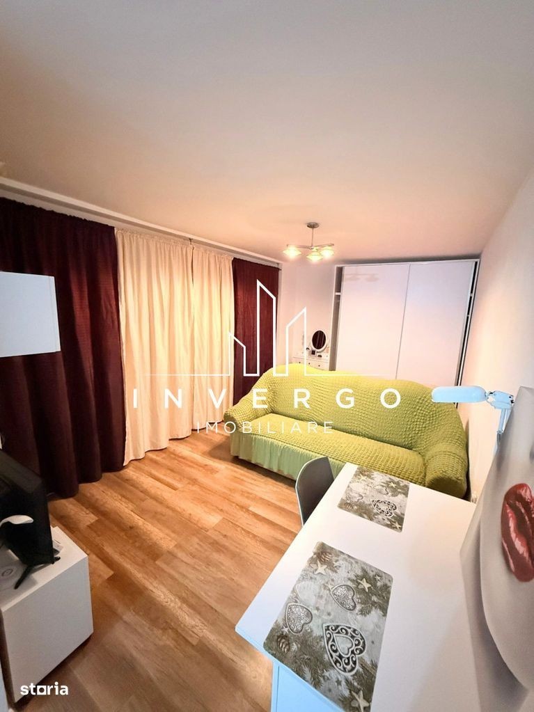 INVERGO IMOBILIARE inchiriază apartament in bloc nou, confort 1, 1 camera, decomandat, 35 mp, zona Buna Ziua, 1 bucatarie, 1 baie, Parchet, Gresie, Finisat, Faianta, C.T, Termopane, Usa metalica (antefractie), Mobilier personalizat, Utilata, Balcon tip logie, 350 EUR pe luna, ID: 49797, Inf. tel. Contactează,invergo.ro
