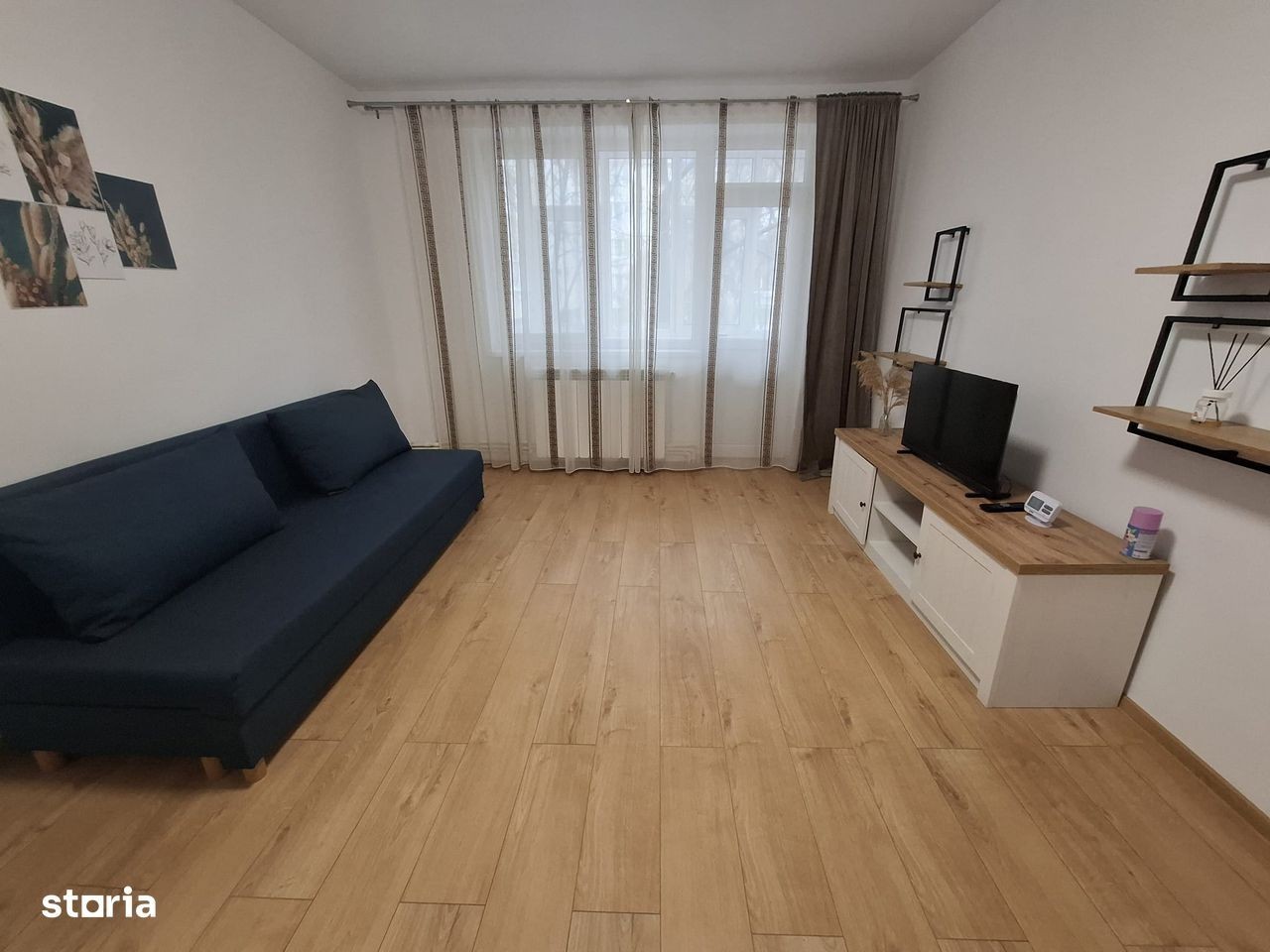 Prin intermediul Agentiei Imobiliare Imob Grup Expert se inchiriază acest apartament cu 2 camere situat la etajul 1 al unui bloc cu 4 etaje. Suprafața utilă este de 45 mp. Construcția este din plăci de beton și este gata de utilizare. Feroneria este din aluminiu, oferind o bună izolare. Locația este în Micro 17, o zonă bine conectată. Ai acces ușor la: