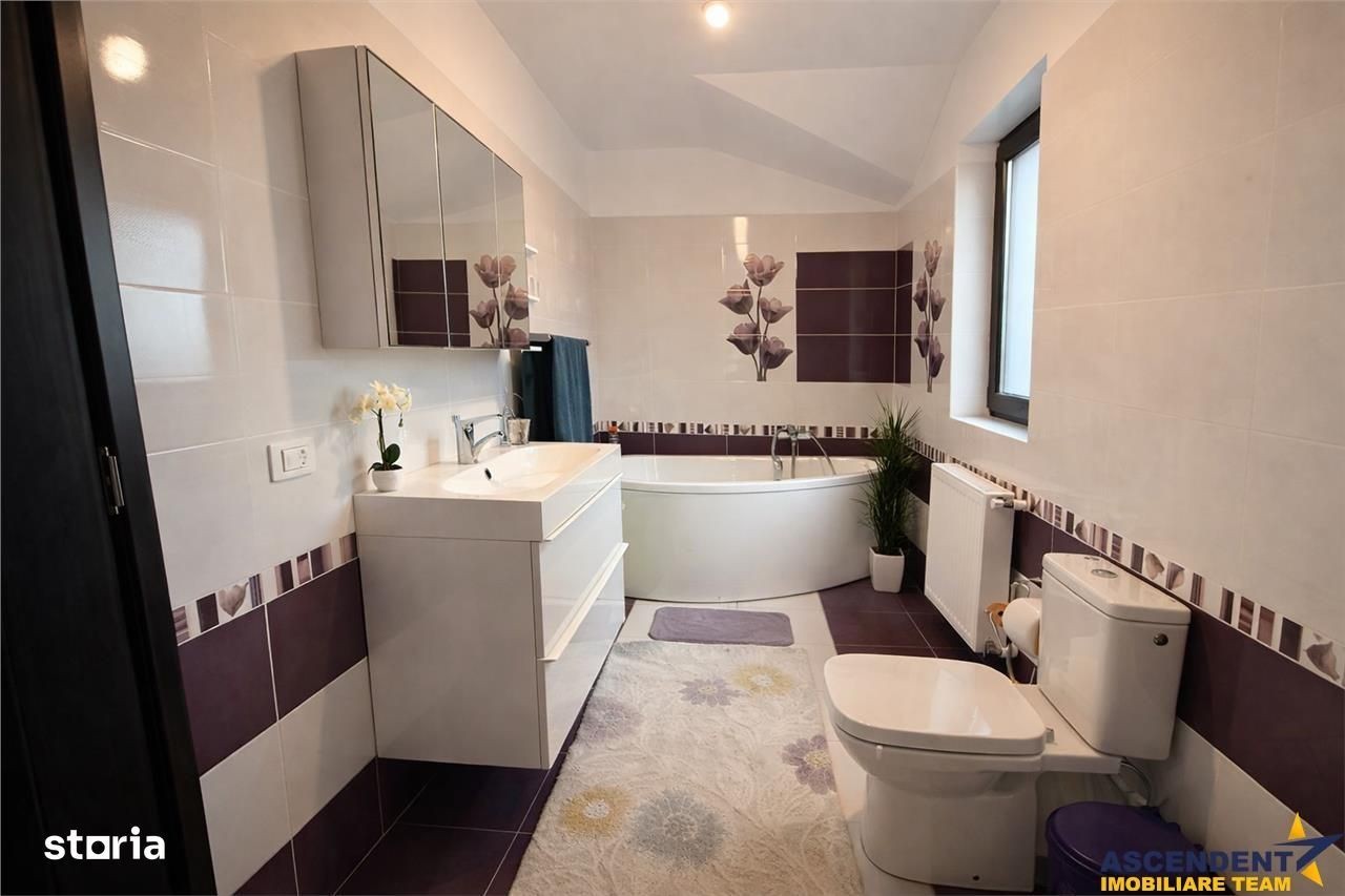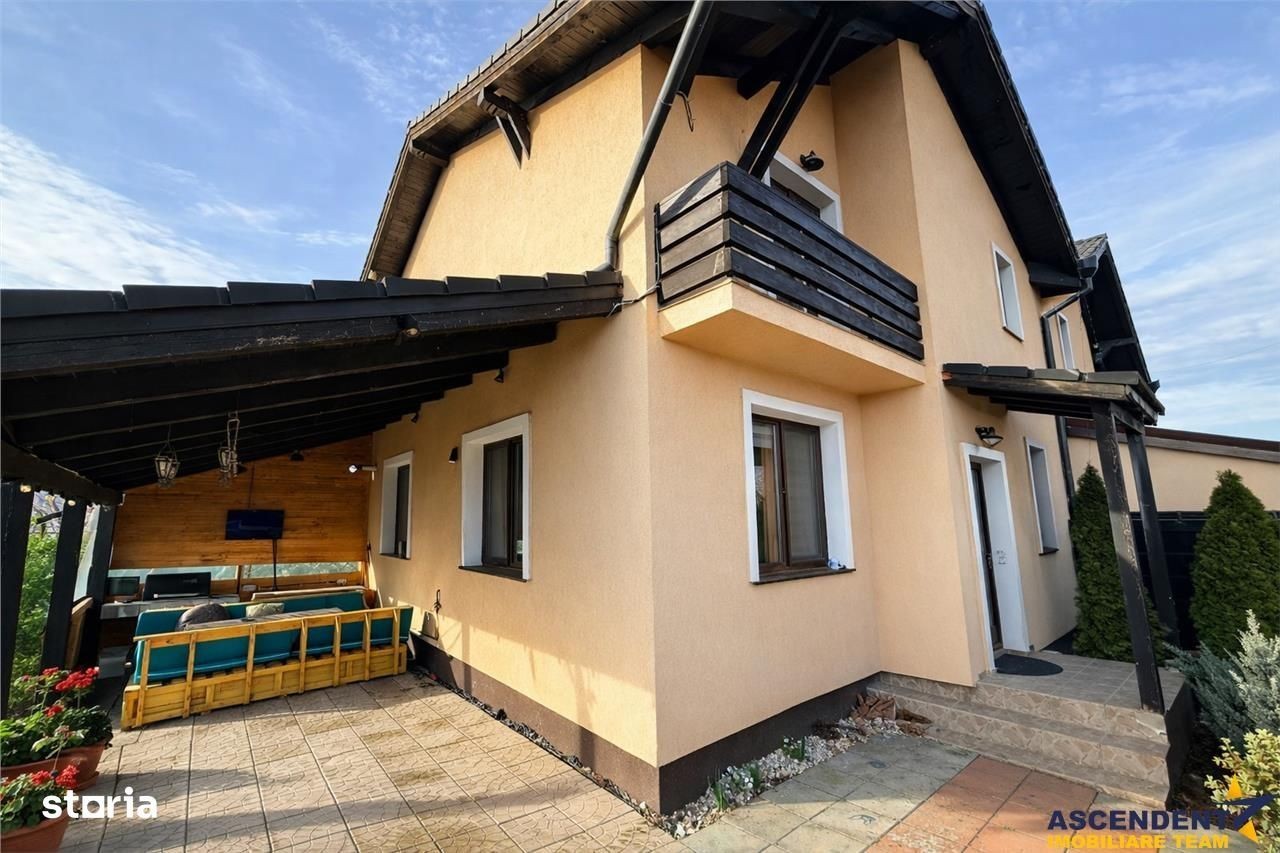 ASCENDENT IMOBILIARE este onorata sa va propunaspre vanzare o casa tip duplex, echilibrata si atent gandita, situata intr-o zona rezidentiala apreciata, cu acces rapid la toate facilitatile zilnice. Proprietatea dispune de 4 camere, o suprafata utila de 100 mp si un teren de 300 mp, oferind un raport foarte bun intre spatiu interior, curte si confort urban. Va invitam sa experimentati o vizionare initiala, din locatia unde va aflati, chiar acum, prin accesarea turului virtual si a filmului de prezentare: Tur virtual tridimensional: in curs de procesare Film prezentare: in curs de procesare Rezidenta este construita solid, cu zidarie din caramida Porotherm, izolatie exterioara de 10 cm si un punctaj energetic excelent de 98.2%, aspect care se traduce prin costuri reduse de intretinere si un climat interior placut pe tot parcursul anului. Compartimentarea este practica si aerisita, iar cele doua bai, amplasate cate una pe fiecare nivel, beneficiaza de geamuri exterioare, un detaliu rar si foarte apreciat. Proprietatea este bransata la toate utilitatile: gaz, apa, canalizare, asfalt si iluminat stradal. Sistemele de siguranta si confort includ videointerfon, camere video, prize exterioare IP68, iluminat ambiental si arhitectural al curtii, precum si un sistem de irigatii subterane. Curtea este amenajata cochet, cu o zona partial inchisa dedicata relaxarii, dotata cu gratar si spatiu de socializare. Accesul facil catre punctele de interes completeaza atractivitatea proprietatii: scoala si gradinita cu program prelungit se afla la doar 250 m, statia de autobuz la 500 m, iar supermarket, farmacie si brutarie la aproximativ 1 km. Construita in 2016 si finalizata, se preteaza atat pentru o familie care cauta stabilitate, siguranta si eficienta, cat si pentru cei care isi doresc o locuinta moderna, intr-un cadru ordonat si bine conectat la oras.