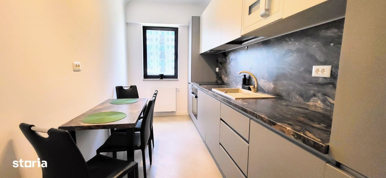 Agenția imobiliară Alestal TSI vă prezinta spre inchiriere, în reprezentare exclusiva și cu comision 0% pentru chiriaș, un studio elegant, ideal pentru un stil de viață modern, rafinat și urban. Prin localizarea excelentă, în inima zonei de nord a Capitalei, în prestigiosul Complex Cortina North, acest studio devine refugiul perfect, combinând confortul cu rafinamentul. Studioul are o suprafata utilă de 40 mp la care adaugam cei 3 mp ai balconului, este complet mobilat și utilat, cu un design interior modern, de înaltă calitate si se bucura de o compartimentare inteligentă + spații generoase de depozitare dar si de o bucătărie ultramodernă echipată cu electrocasnice premium, inclusiv masina de spalat vase. Finisajele sunt din gama Premium si includ parchetul triplustratificat, Uși interioare Filomuro cu toc ascuns, Tavane extensibile Barrisol, iar mobilierul este realizat pe comandă, cu atenție la detalii Confortul termic este asigurat prin centrală proprie, calorifere moderne și sistem de climatizare LG în fiecare zonă a locuinței - perfect pentru orice anotimp. Complex Cortina North residence si se mandreste cu standarde înalte de locuire: Fațadă ventilată Swisspearl Tâmplărie Schüco Obiecte sanitare Daniel Rubinetterie Parcări subterane pe două niveluri Securitate 24/7, videointerfon și pază permanentă Facilități Exclusive: Acces securizat 24/7 Piscină semiolimpică, sală de fitness & wellness Zonă comercială în incintă Grădini amenajate, alei pietonale și pistă de alergare Localizare Premium: Acces rapid din Bulevardul Pipera, în apropiere de: Parcul Herăstrău Promenada Mall Metrou Aurel Vlaicu Centre de business, restaurante și servicii esențiale Loc de parcare subteran inclus în preț Pentru mai multe detalii sau pentru a programa o vizionare, vă invităm să ne contactați. Cheile sunt in agentie iar vizionarile se fac cu prioritate, in baza unei programari.